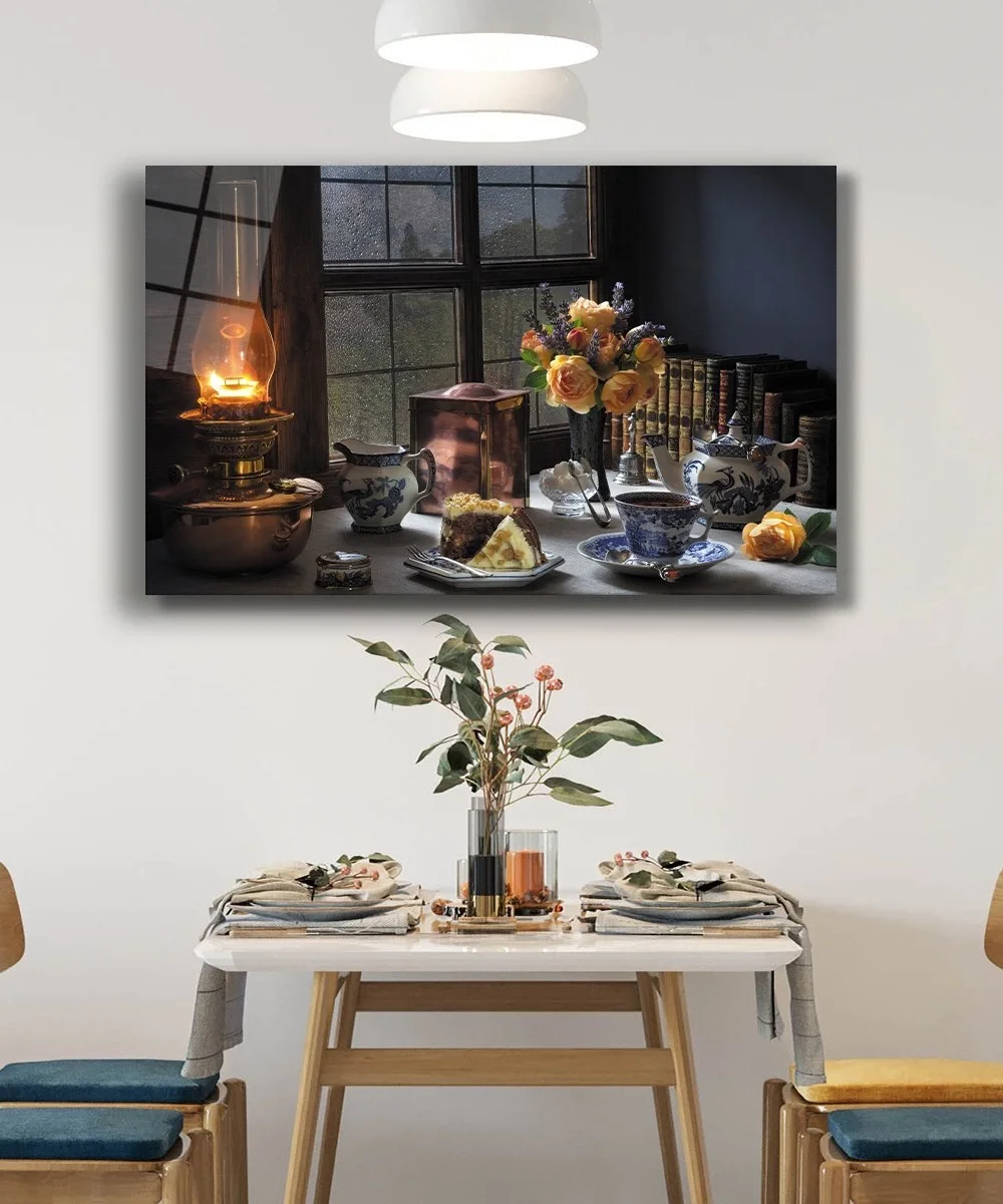 The printing of the glass painting is in the form of direct printing on the back surface of the glass. In this way, the printing remains behind the glass and you will see the high printing quality with the elegance of the glass.