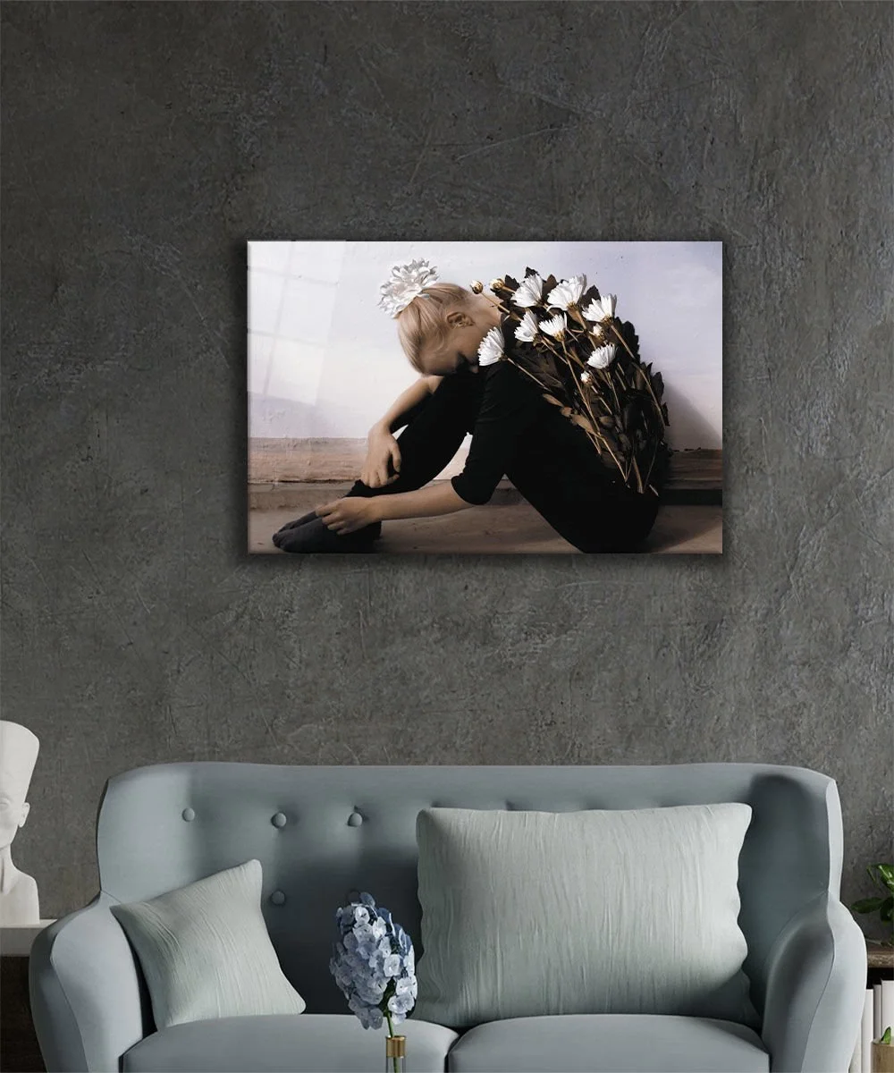Women Flower Glass Painting Women Flower