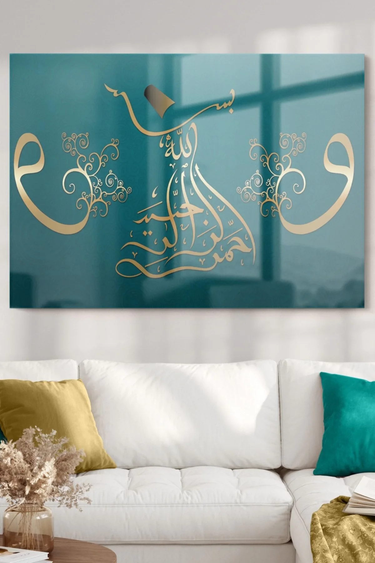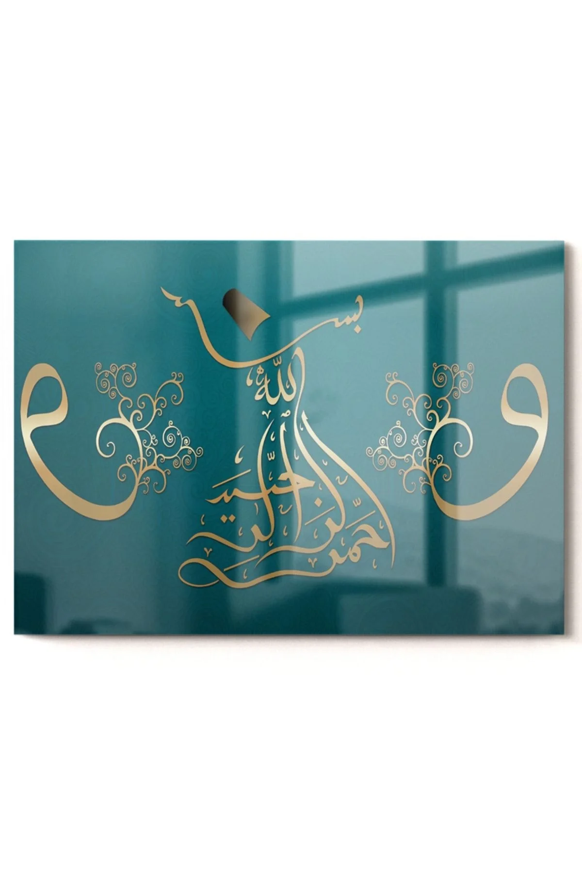 Vav Whirling Dervish Green| Religious Themed Glass Painting | 50x70cm