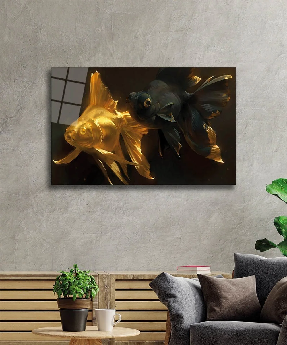 Yellow and Black Fish Glass Painting Black and Yellow Fish