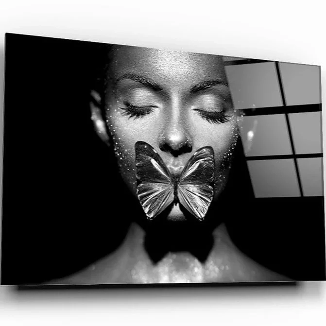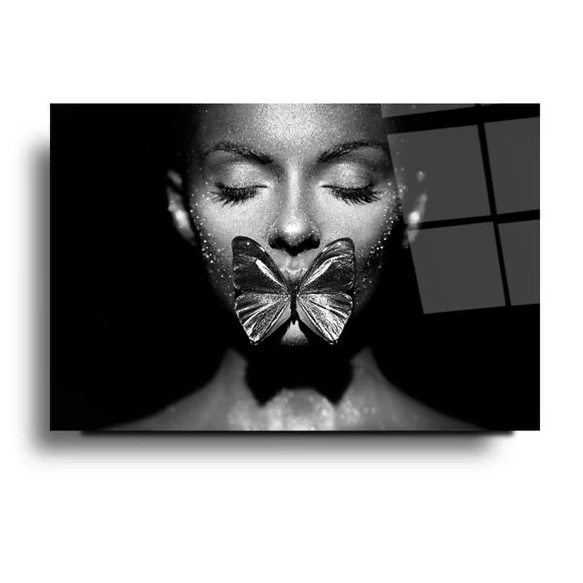 Woman with a Butterfly in Her Mouth Artistic Glass Painting