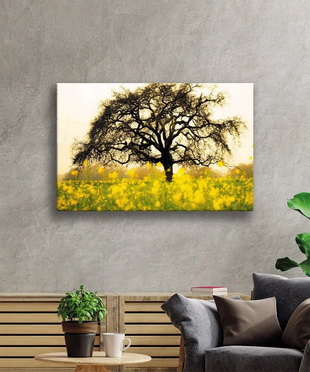 TEKNOO- Yellow Flower Tree Landscape Green Glass Painting
