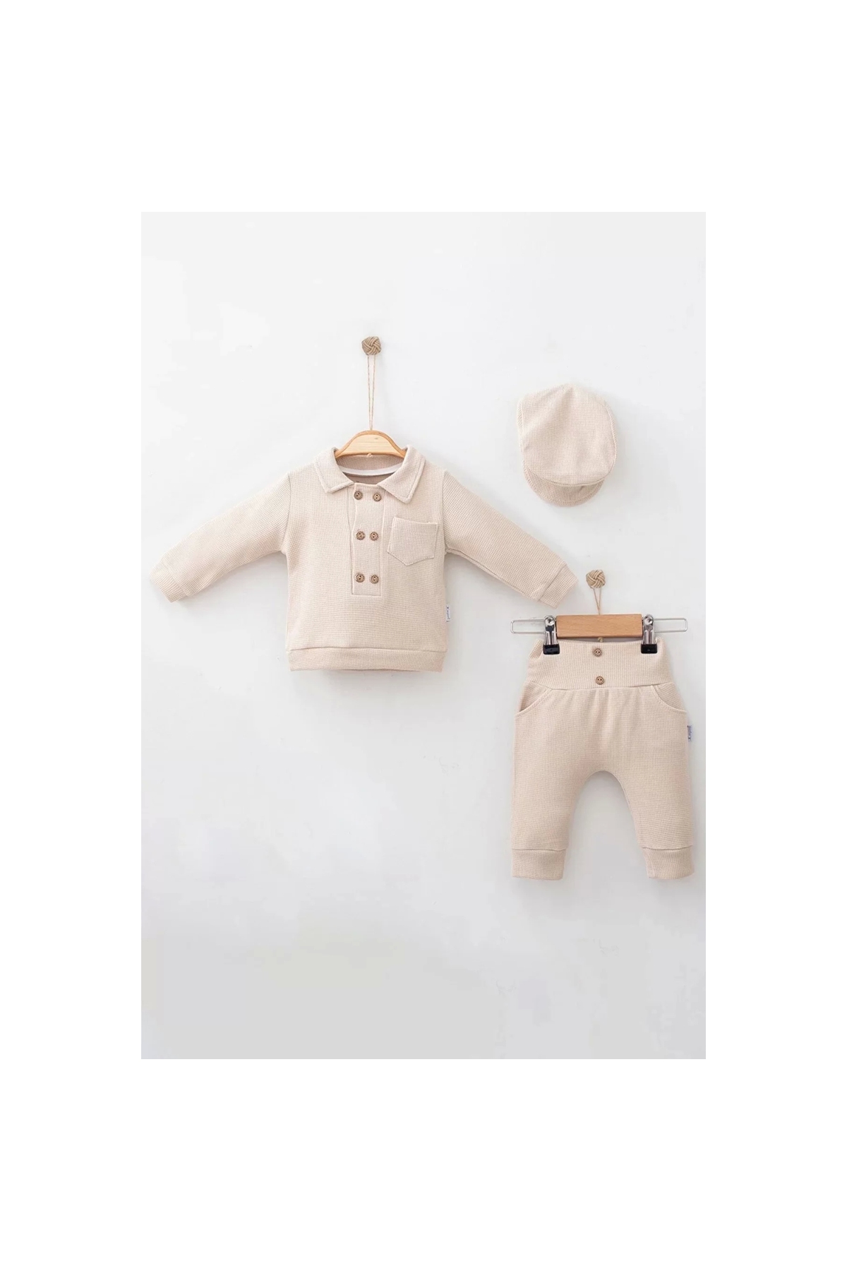Buttoned Luxury 100% Cotton Hat 3-Piece Baby Boy Set