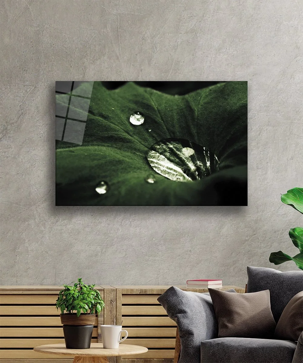 TEKNOO- Green Leaves Water Drop Glass Painting