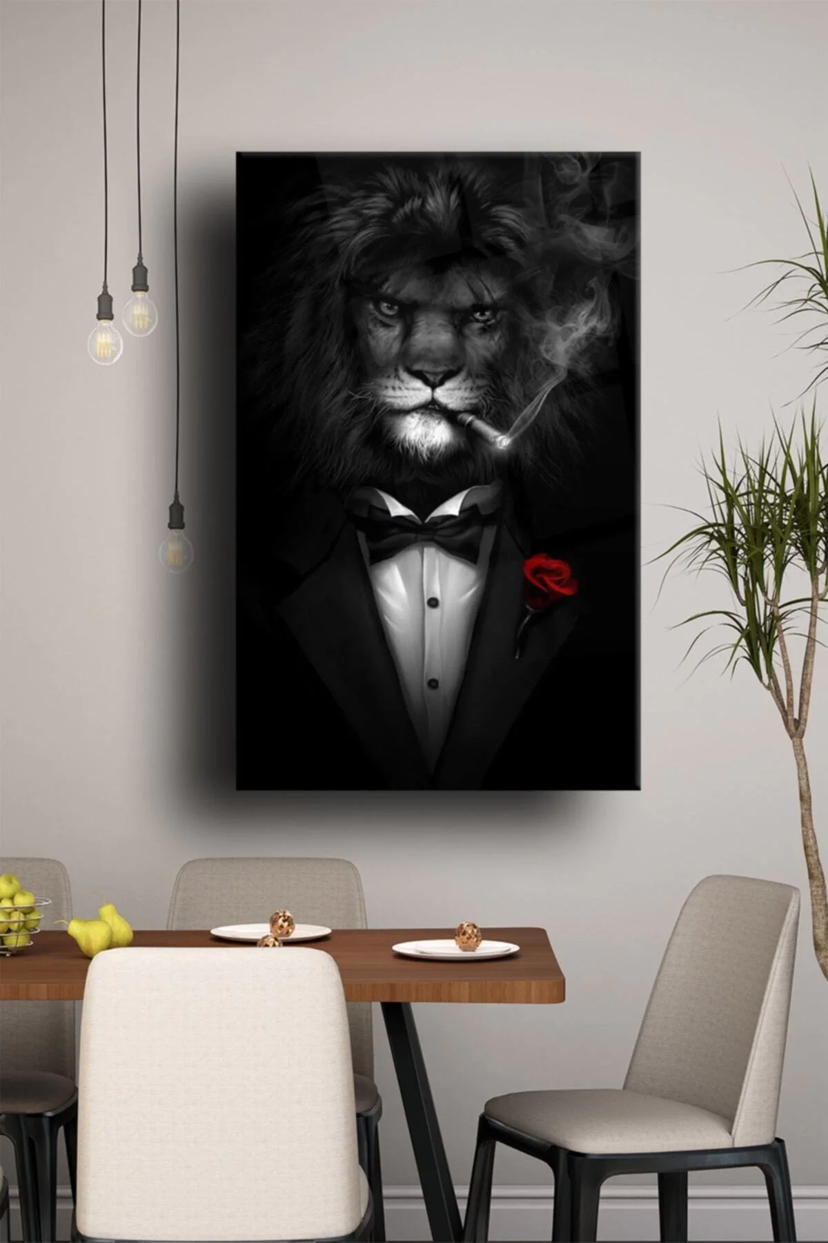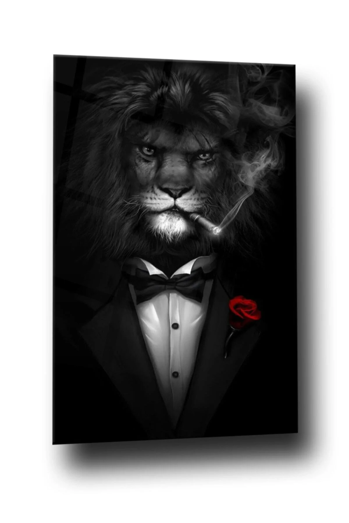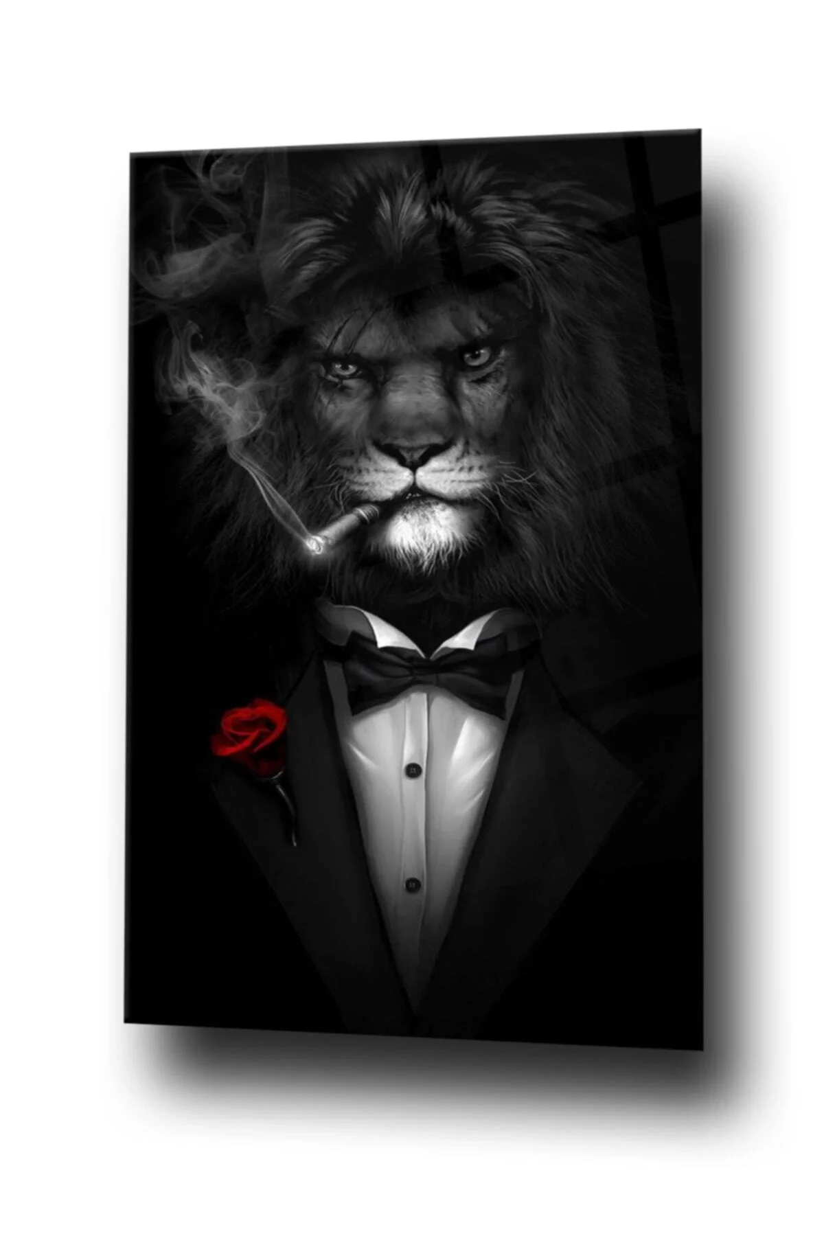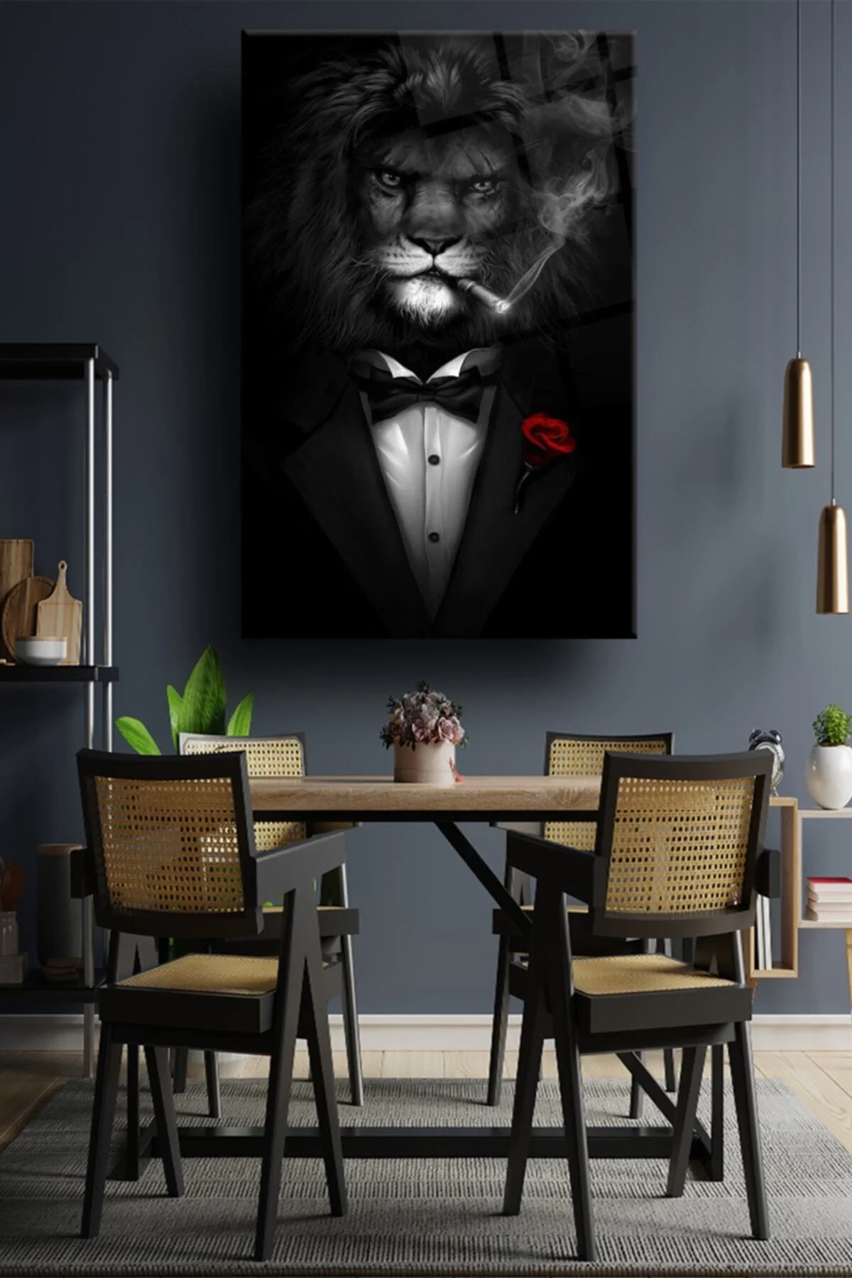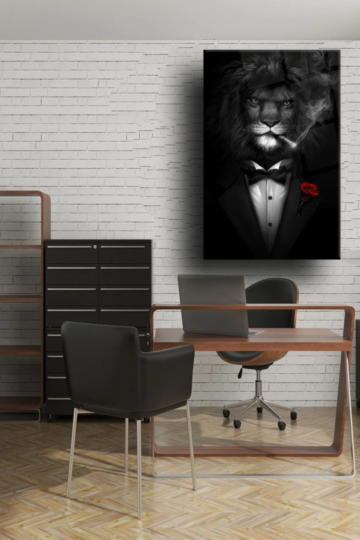Tuxedo Lion Glass Painting, Wall Decoration Products