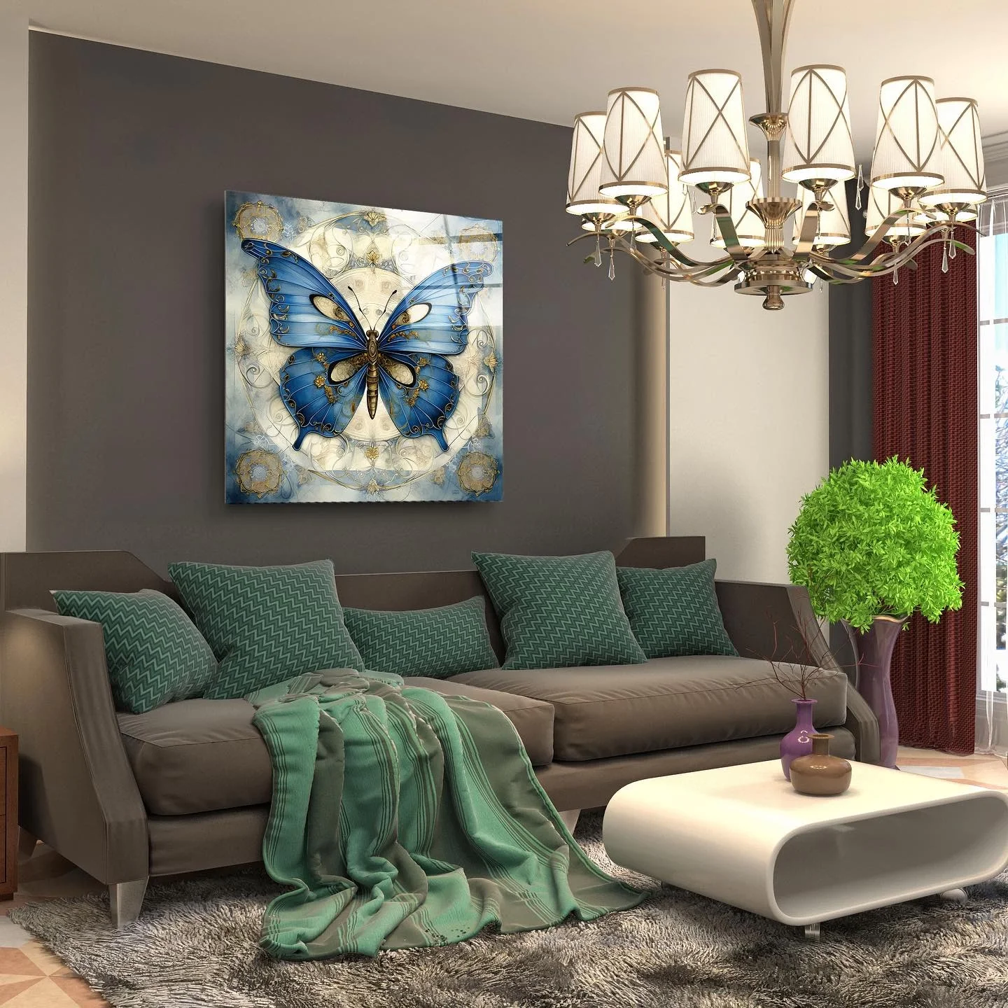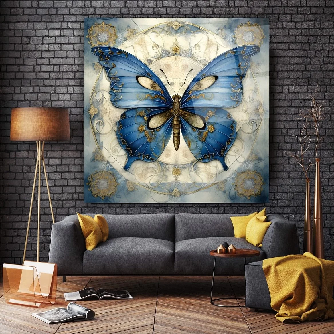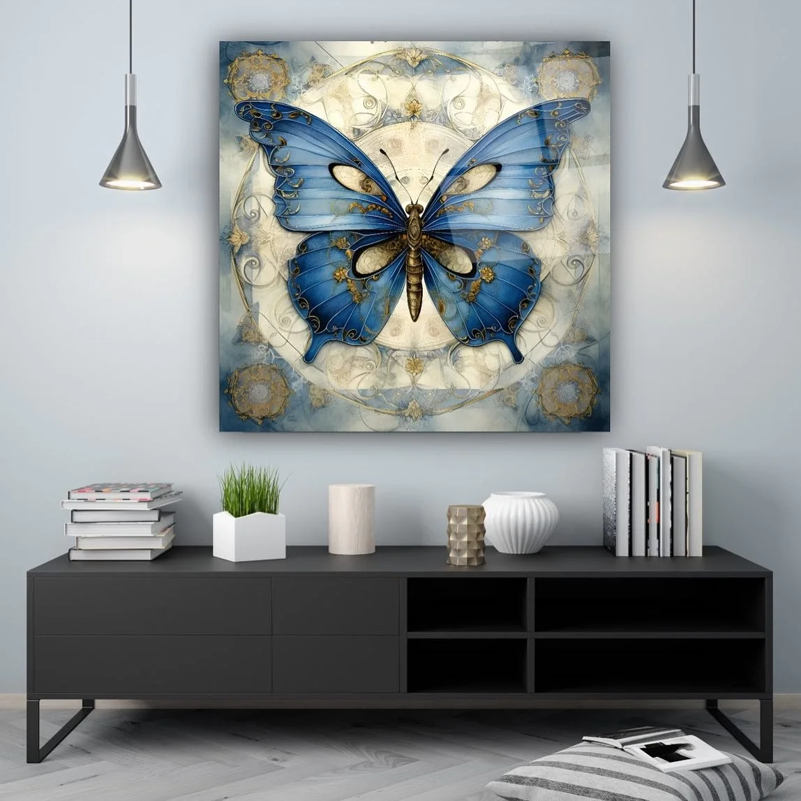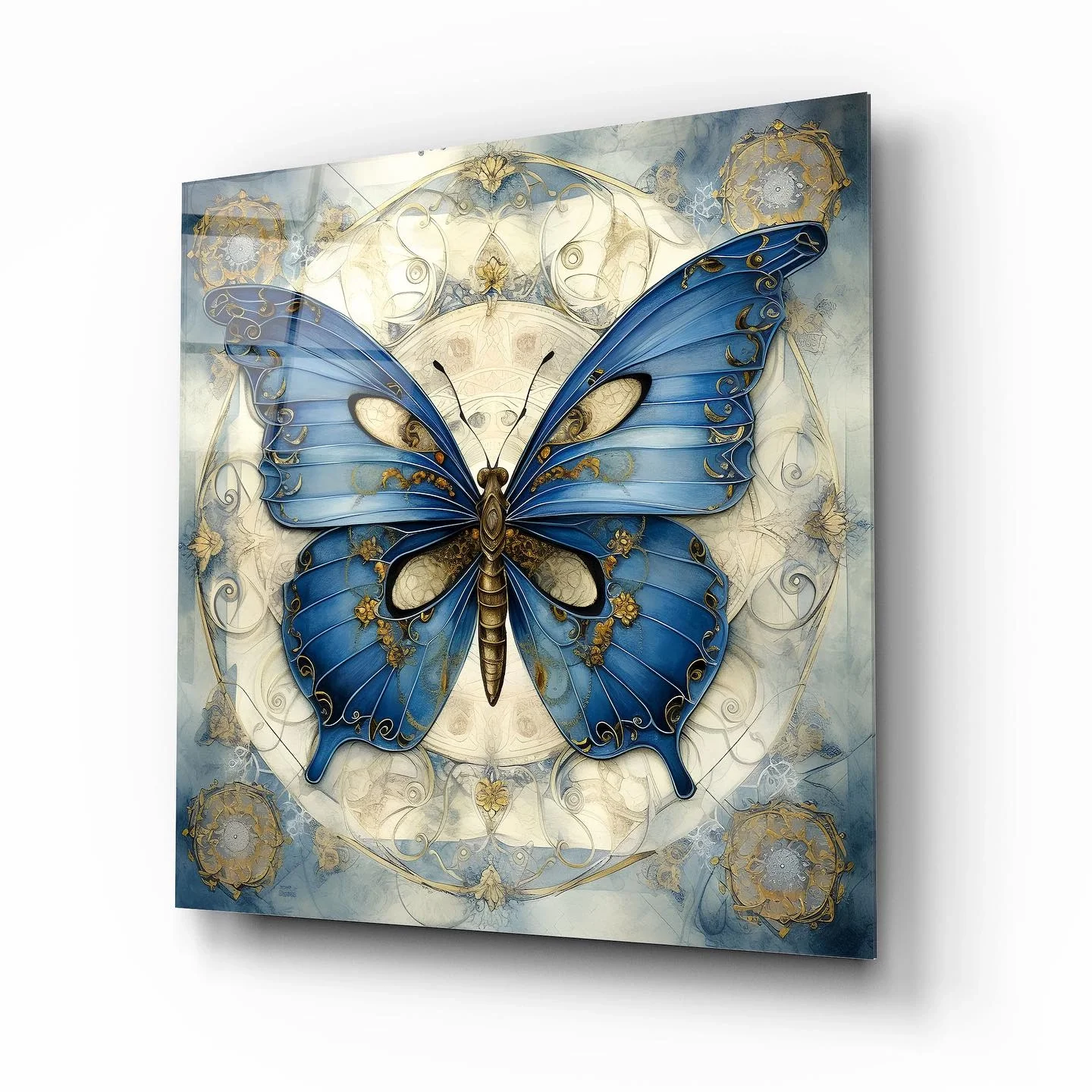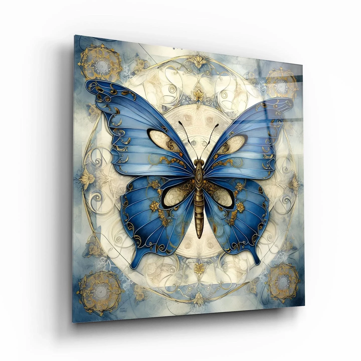 Blue Butterfly Artistic Glass Painting