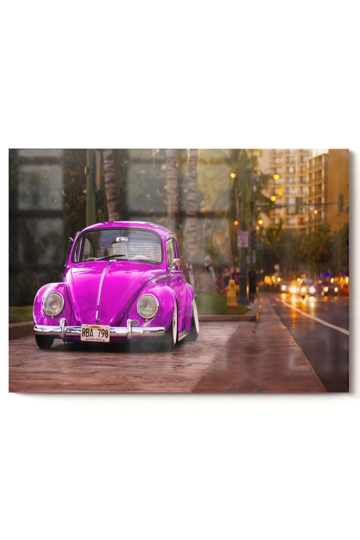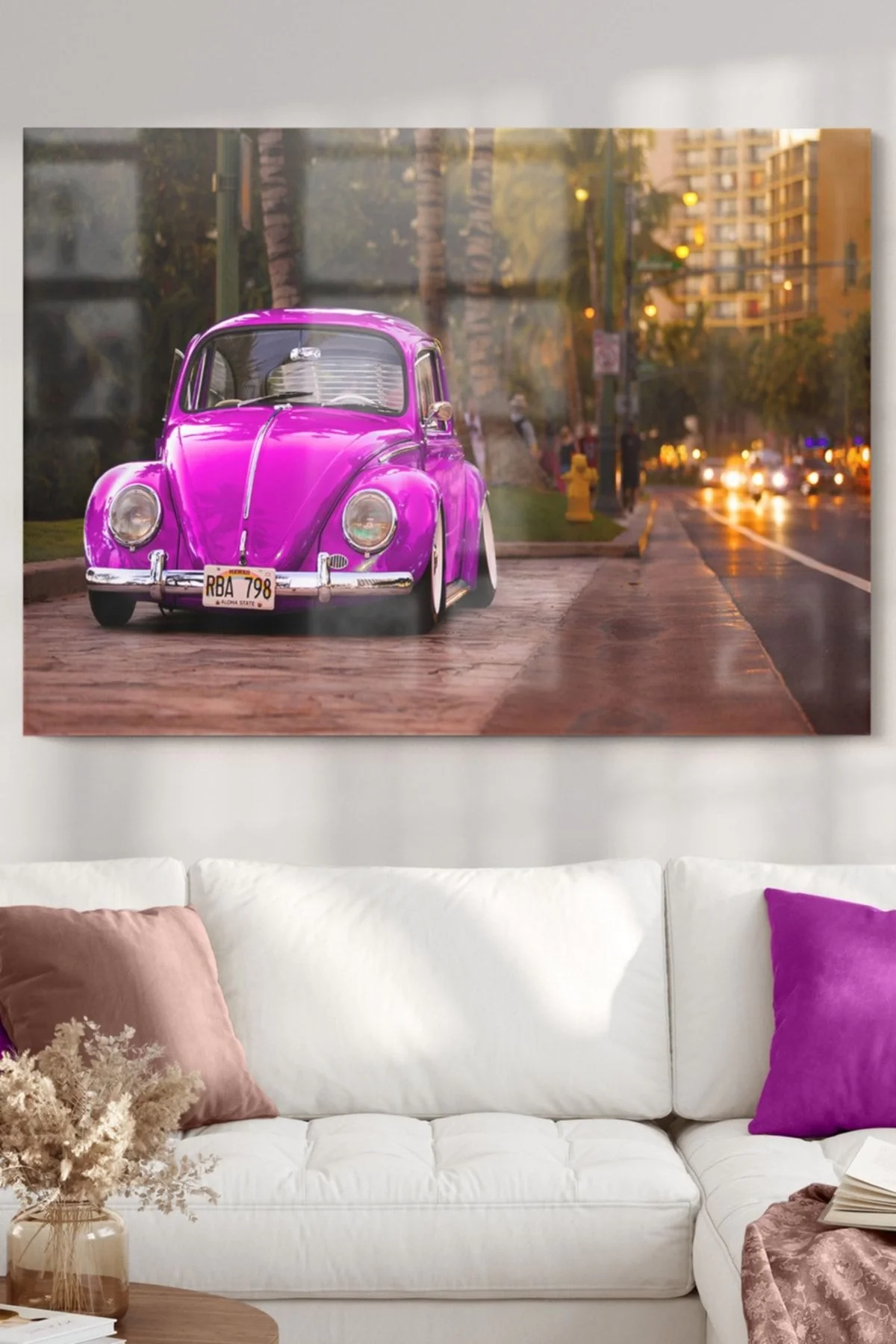 Pink Vosvos Car | Car Themed Glass Painting | 50x70cm