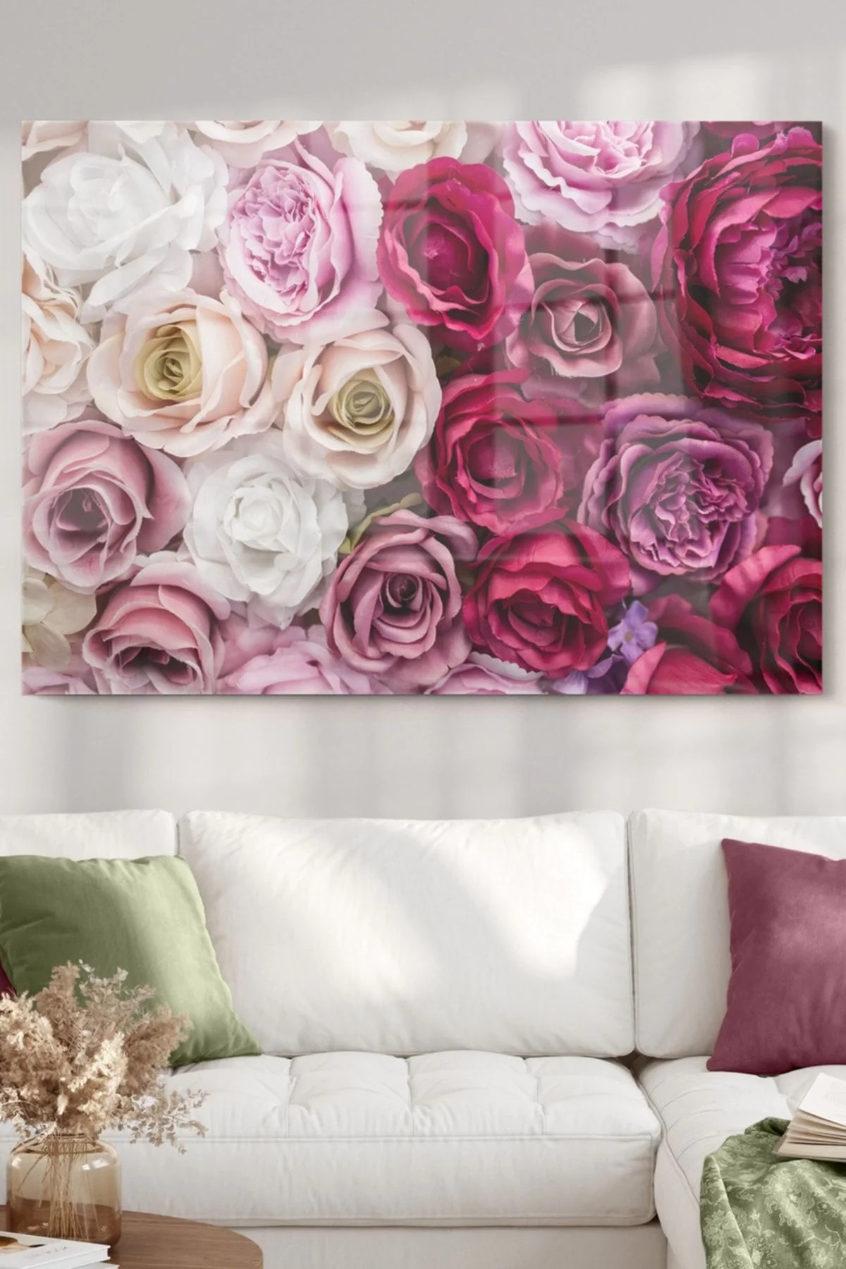 Colorful Roses | Flower Themed Glass Table | 50x70cm