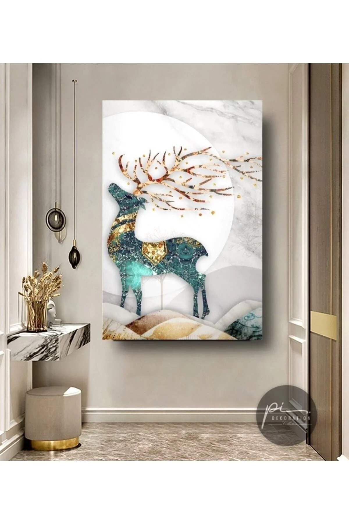 Gold Deer Glass Painting