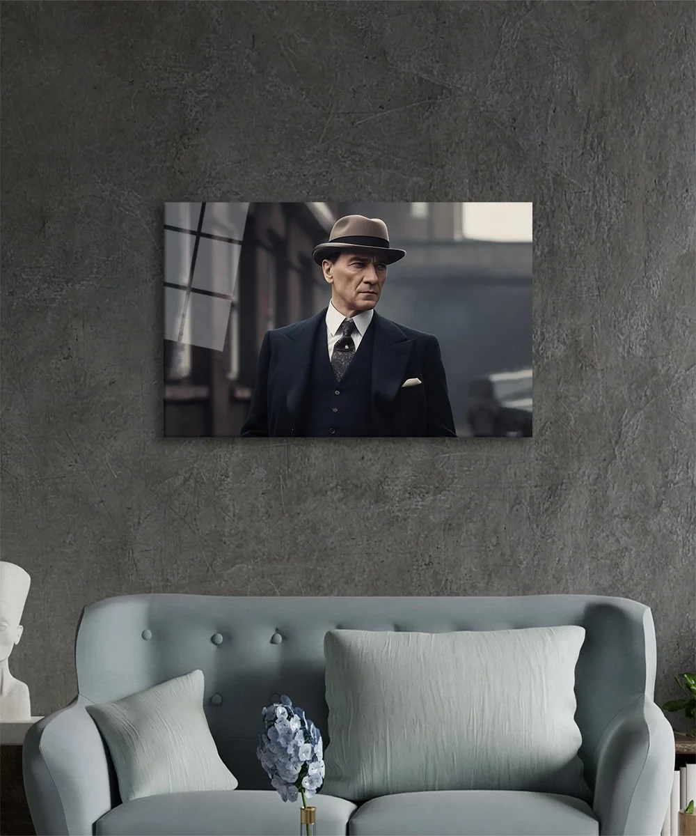 TEKNOO- Artificial Intelligence Ataturk Portrait Glass Painting Home and Office Wall Decoration