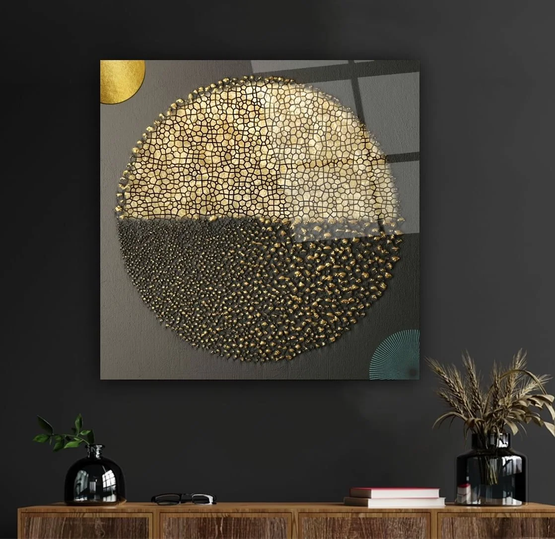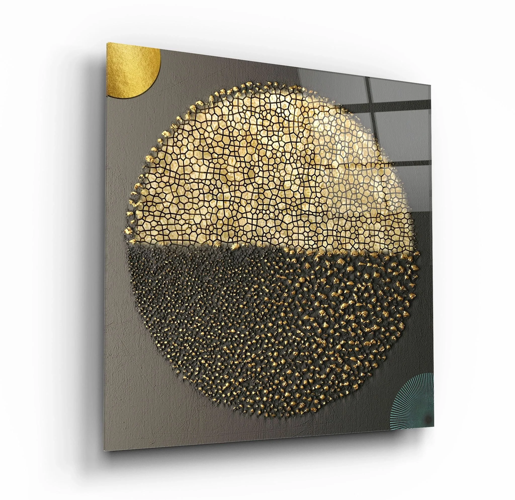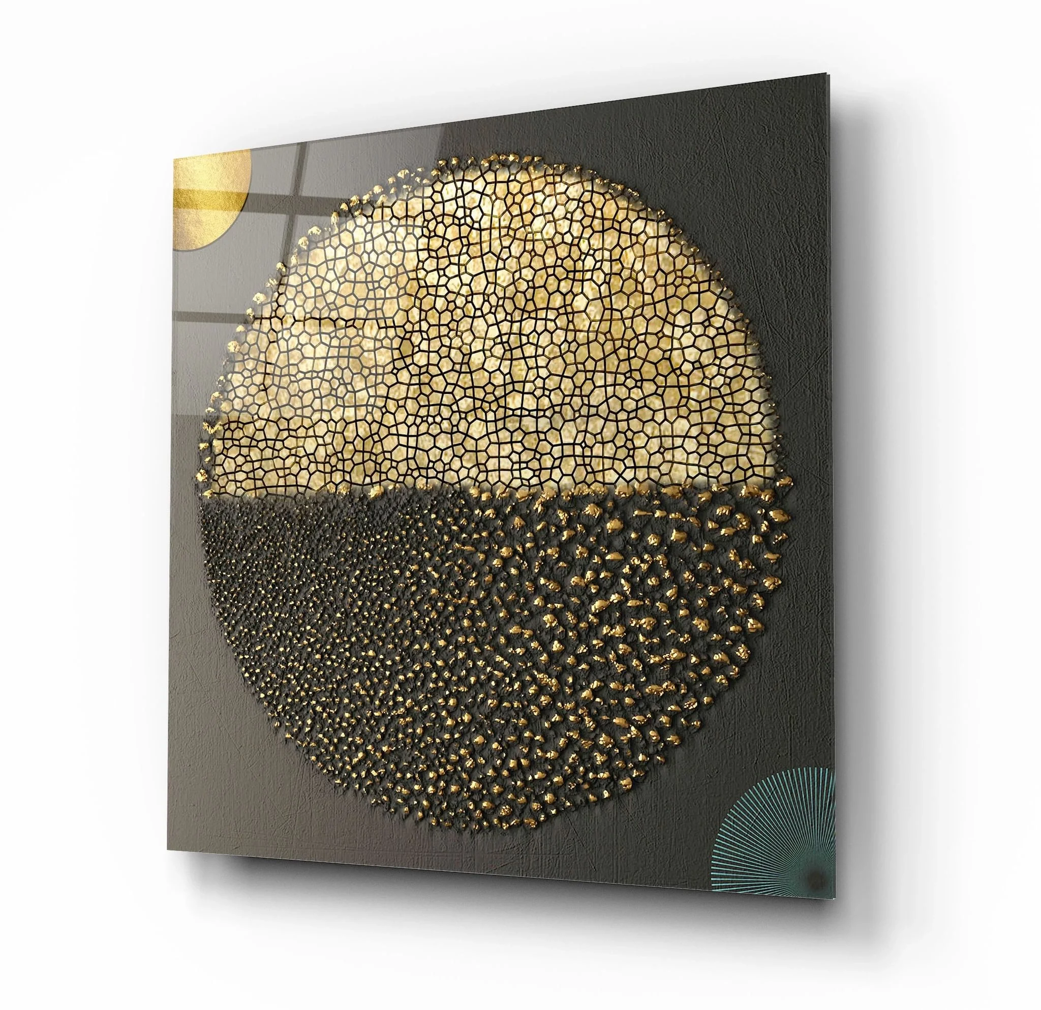 Artistic Glass Painting with Gold and Dark Mosaic Pattern