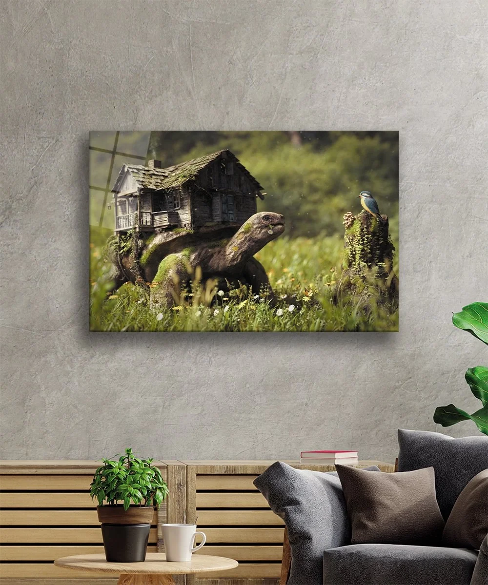 TEKNOO- Illustration Animal Landscape Green Glass Painting