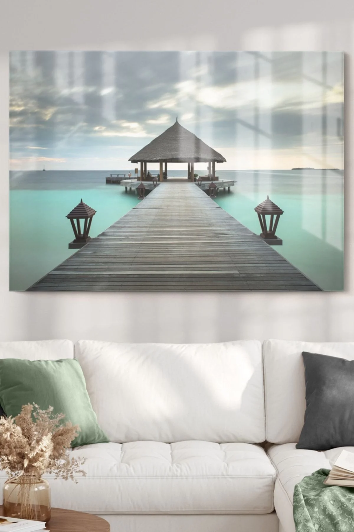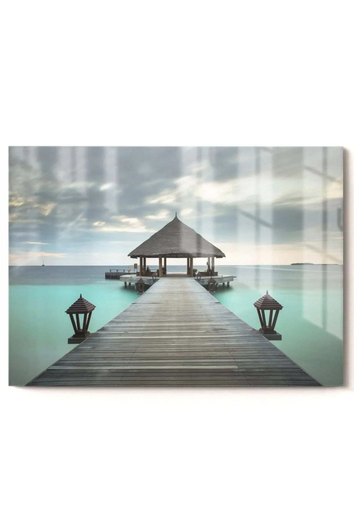 Ocean And Pier | Landscape Themed Glass Painting | 50x70cm