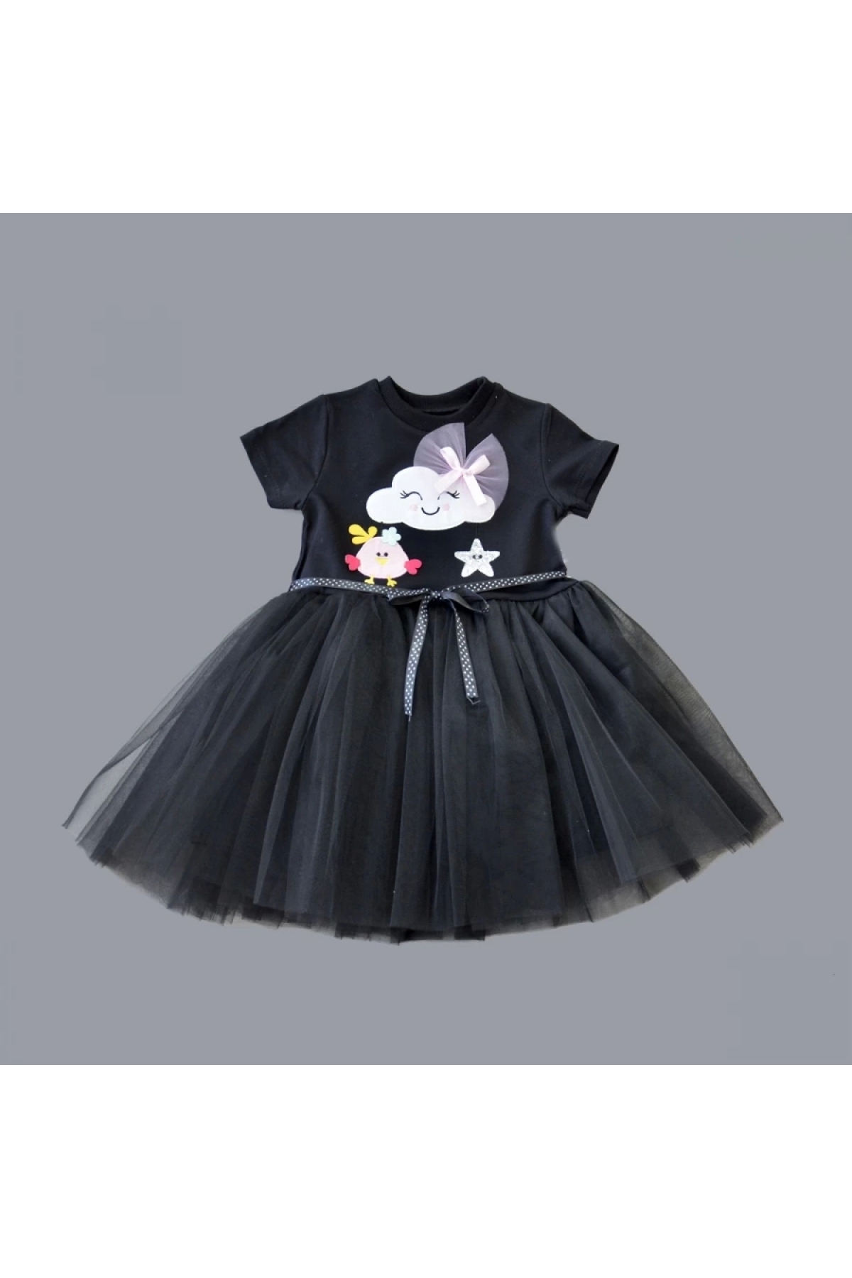 1-2-3 Years Old Tulle Buckle Cloud Chick and Star Embroidered Baby Girl Dress