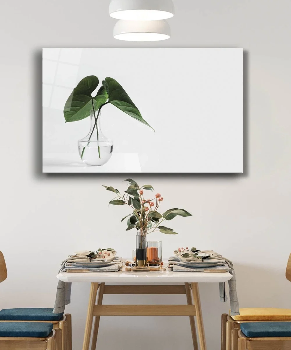 Green Leaves in Vase Glass Table 4mm Tempered