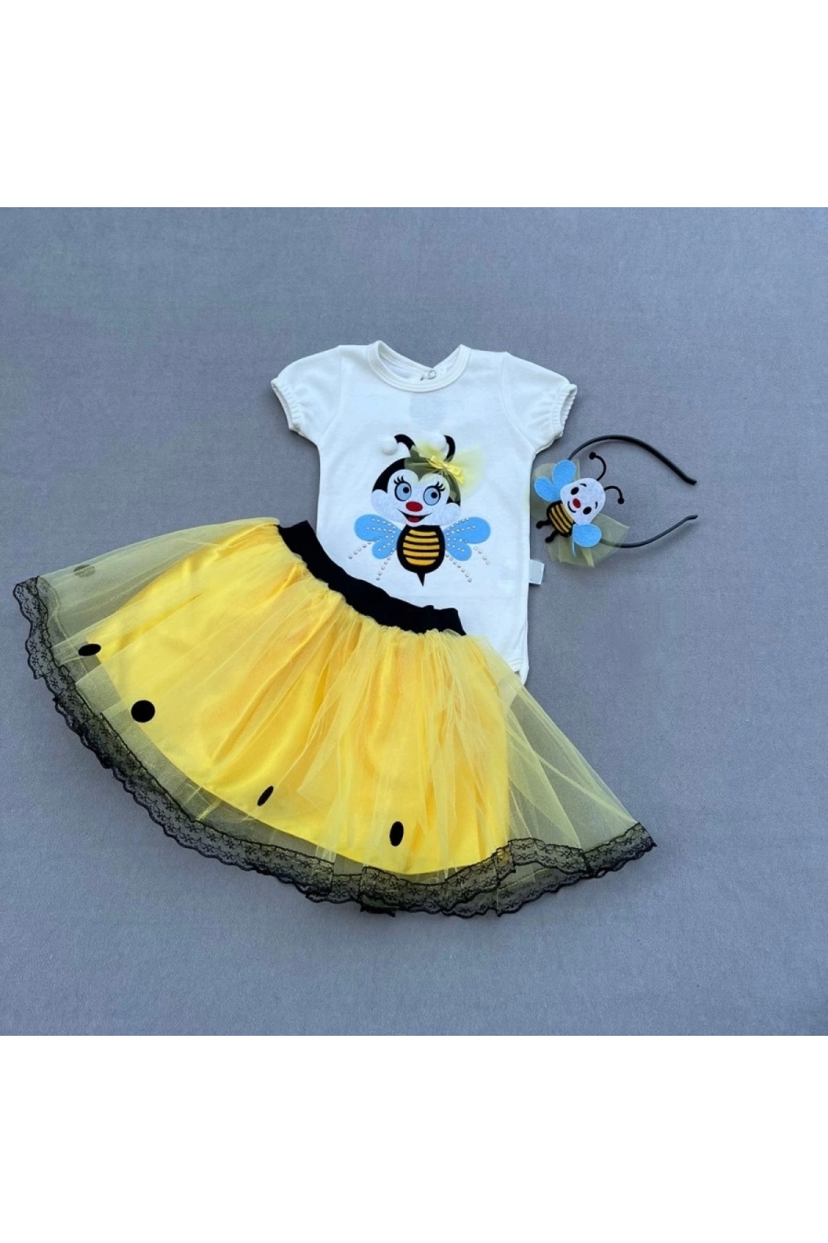 9-12-18 Months 2-Piece Baby Girl Set with Crowned Bee Patterned T-Shirt and Tutu Skirt