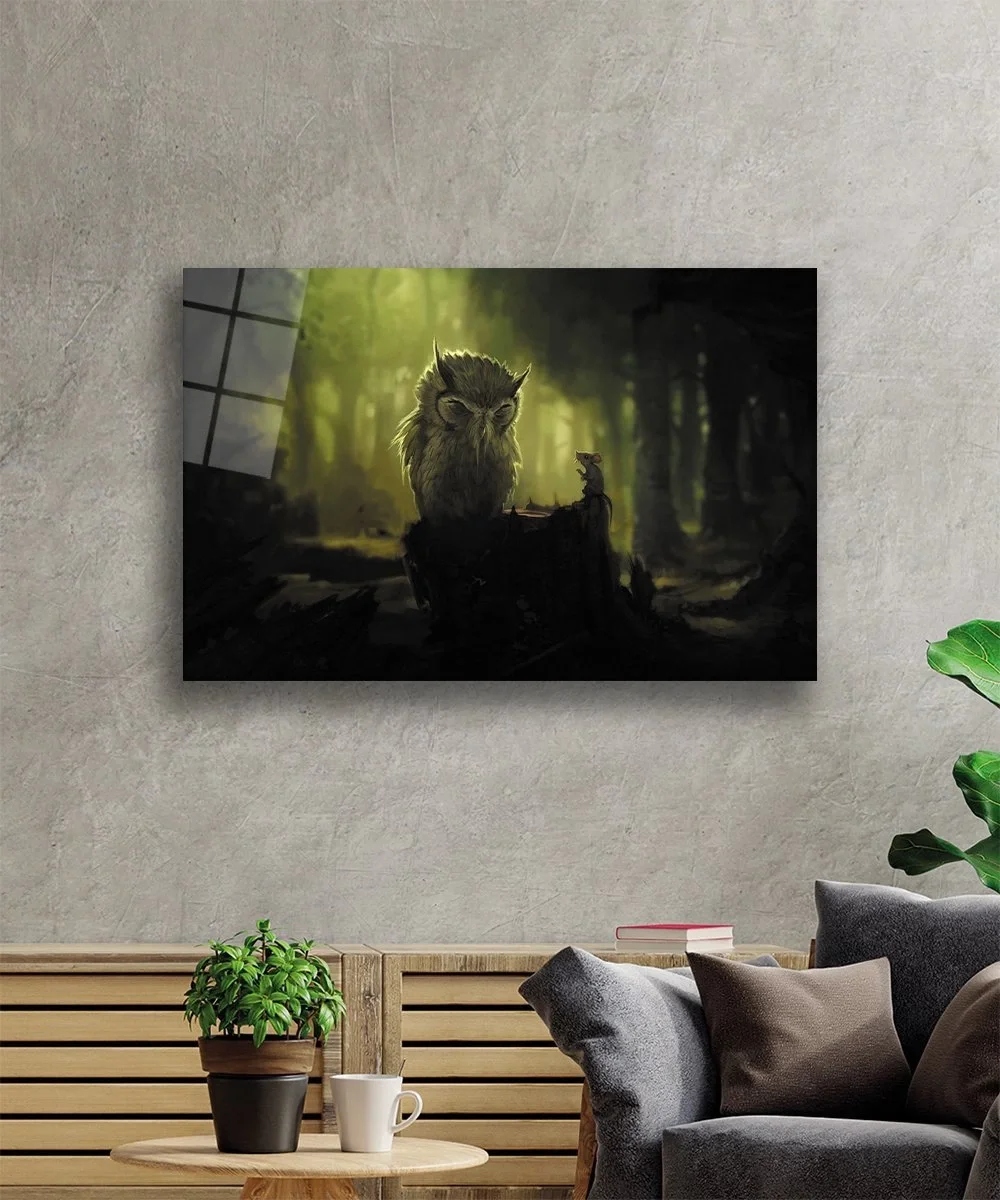 TEKNOO- Owl Mouse Forest Night Green Glass Painting