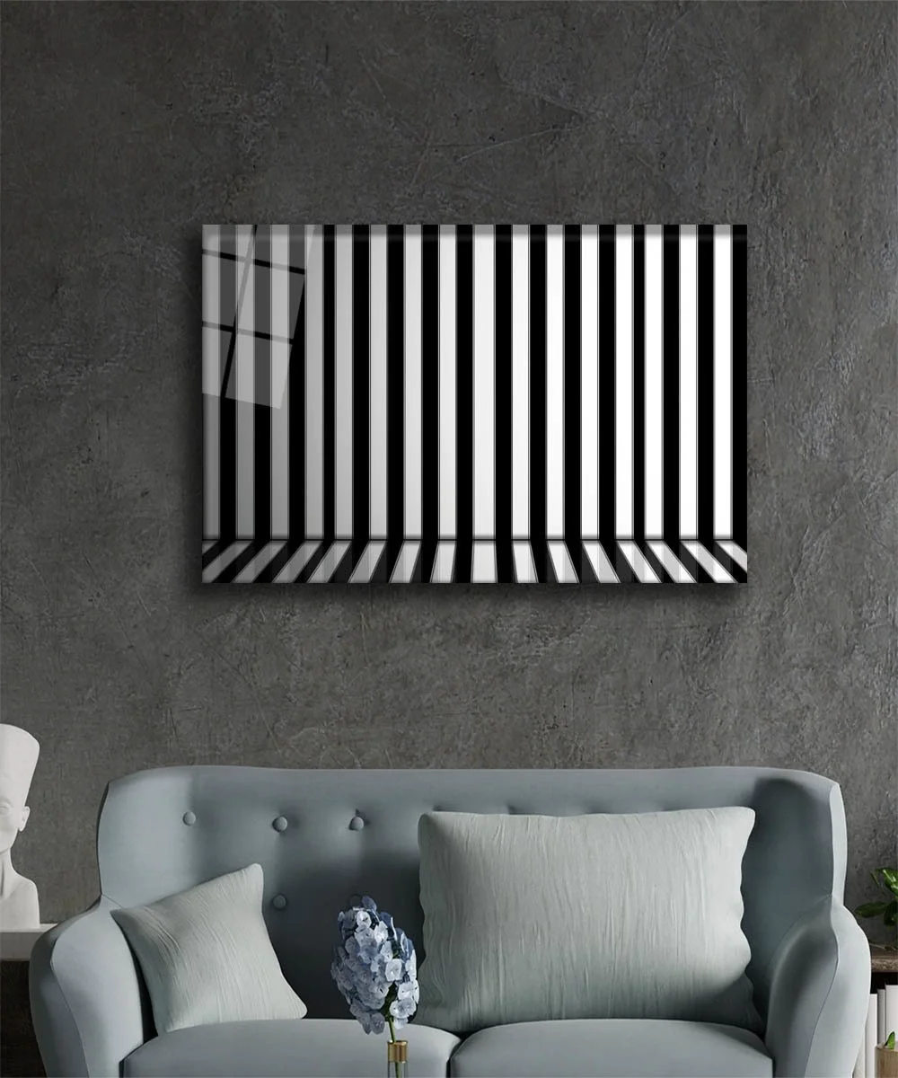Black and White Geometric Architectural Glass Painting