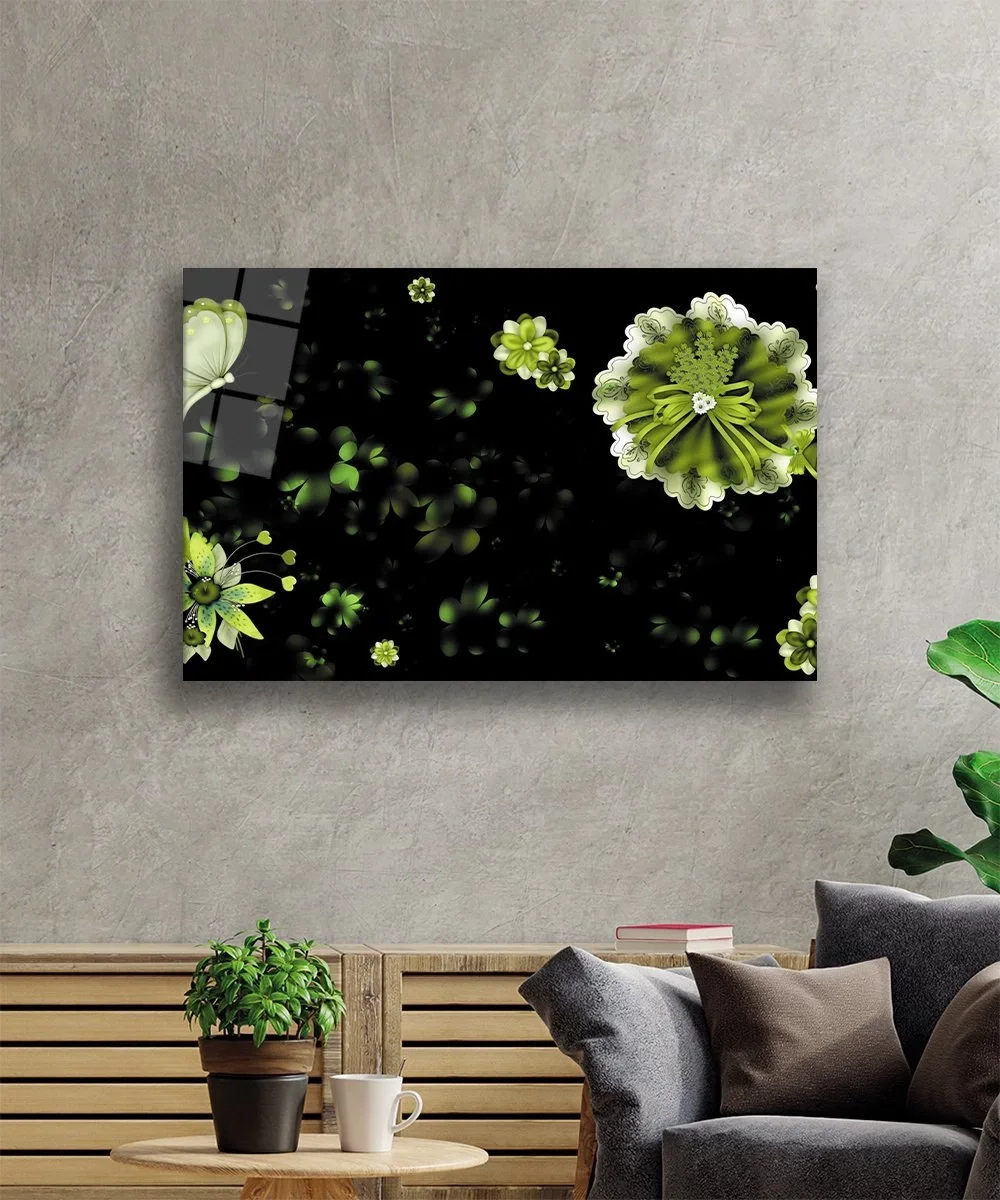 TEKNOO- Black Flower Green Glass Painting