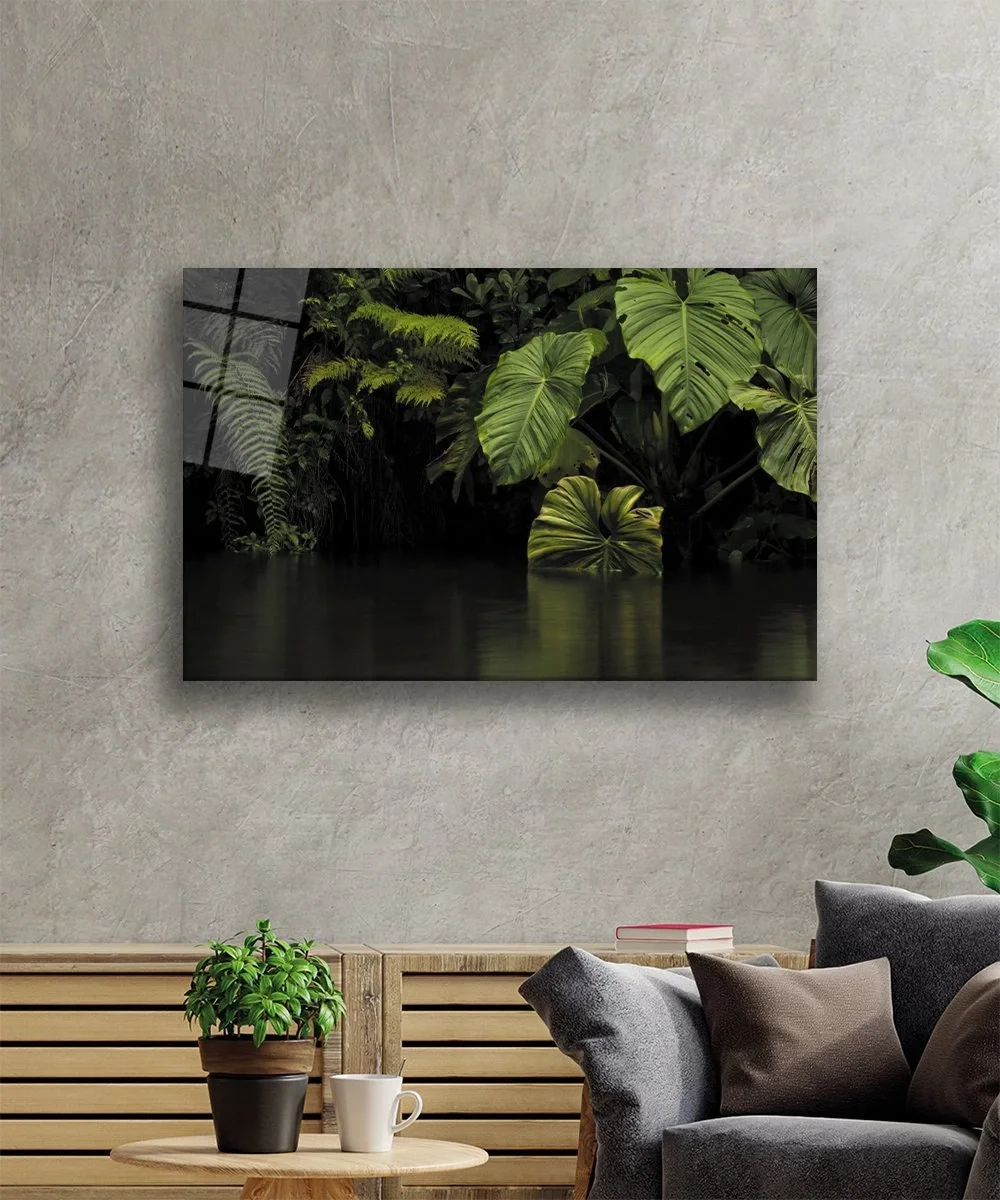 TEKNOO- Big Green Leaves Landscape Green Glass Painting