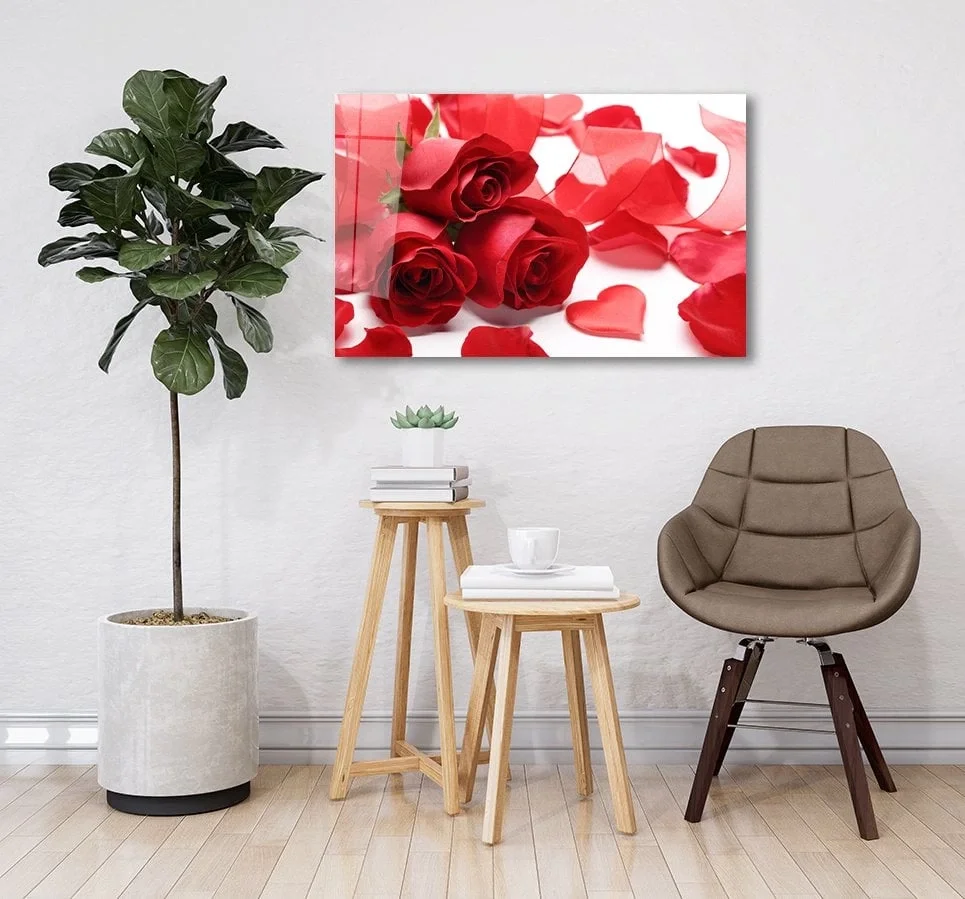 Glass paintings are definitely not a form of pasting a printed media to the glass. ;  It is prepared by direct UV printing on the glass surface with a special technique