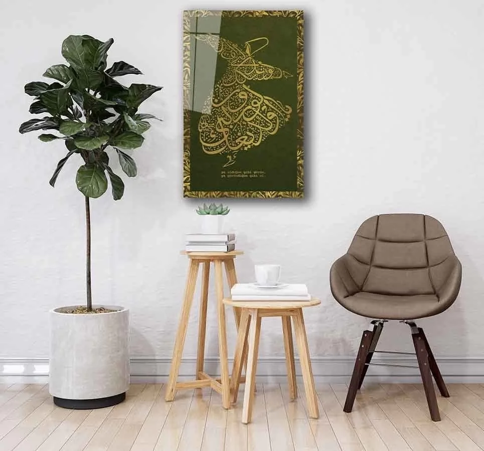 TEKNOO- Mevlana Whirling Dervish Green Yellow Glass Painting