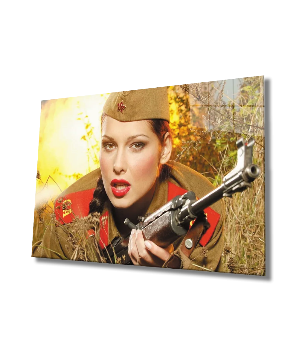 Women in Soldier Uniform Glass Painting