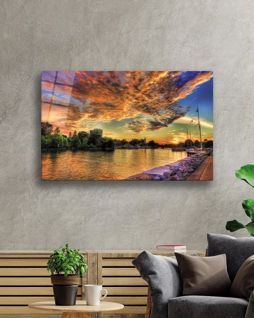 The printing of the glass painting is in the form of direct printing on the back surface of the glass. In this way, the printing remains behind the glass and you will see the high printing quality with the elegance of the glass.
