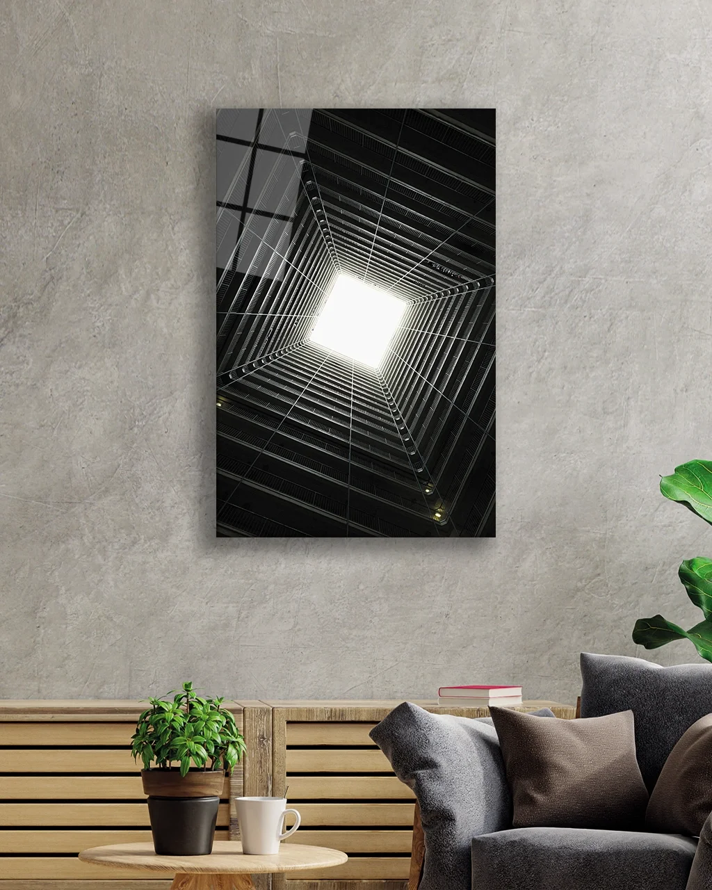 TEKNOO- Black and White Geometric Glass Painting from Bottom to Top