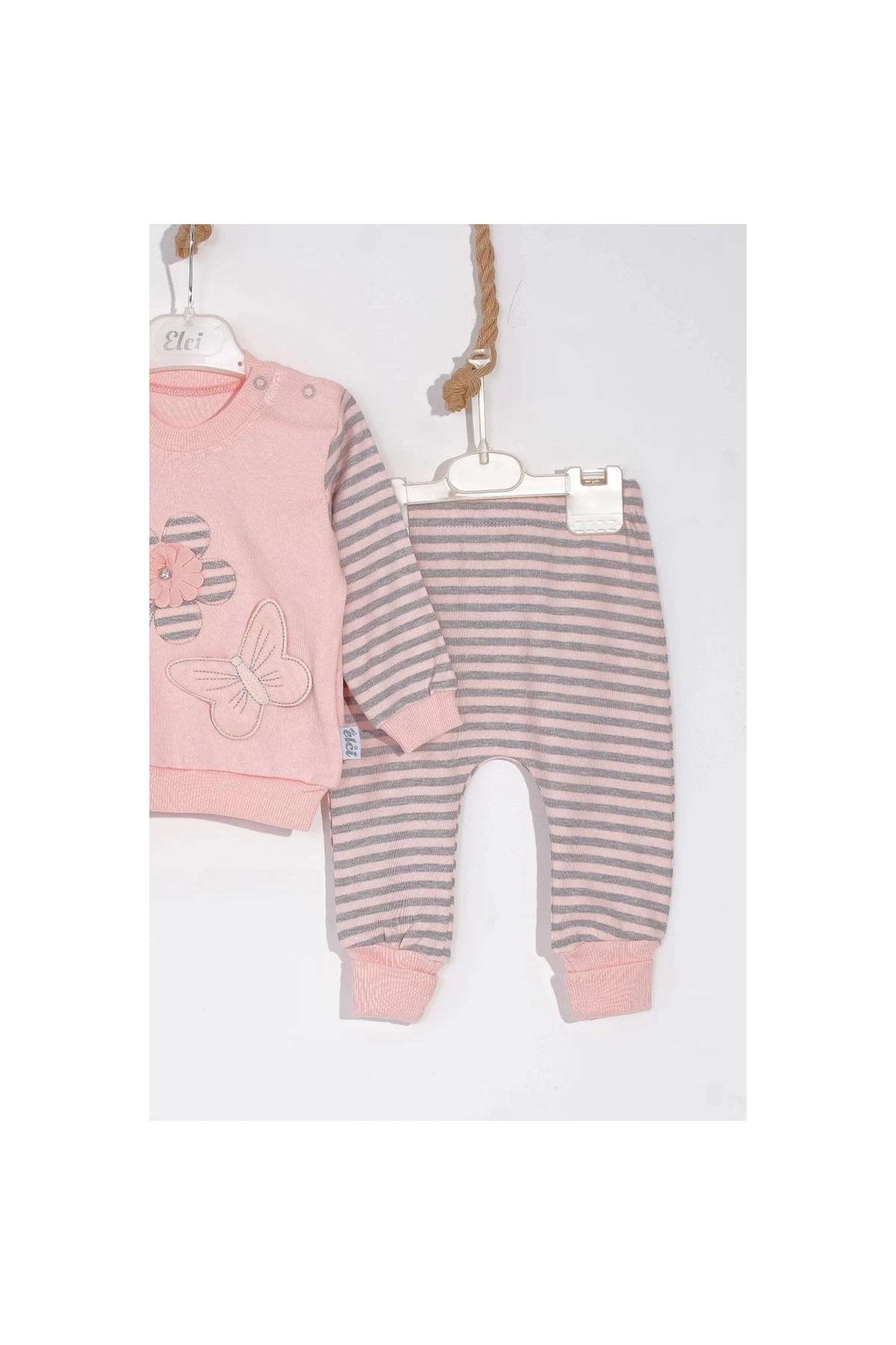 Butterfly Flower Embroidered Cotton 2-Piece Baby Girl Set