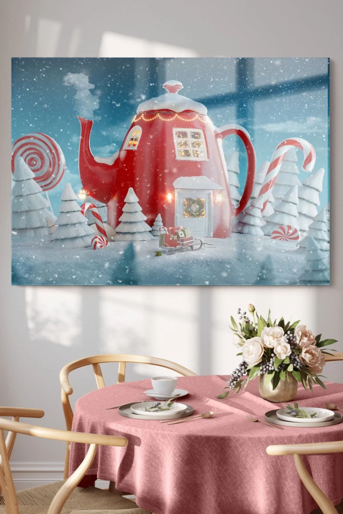 Teapot Modern Red White | Kitchen Themed Glass Table | 50x70cm