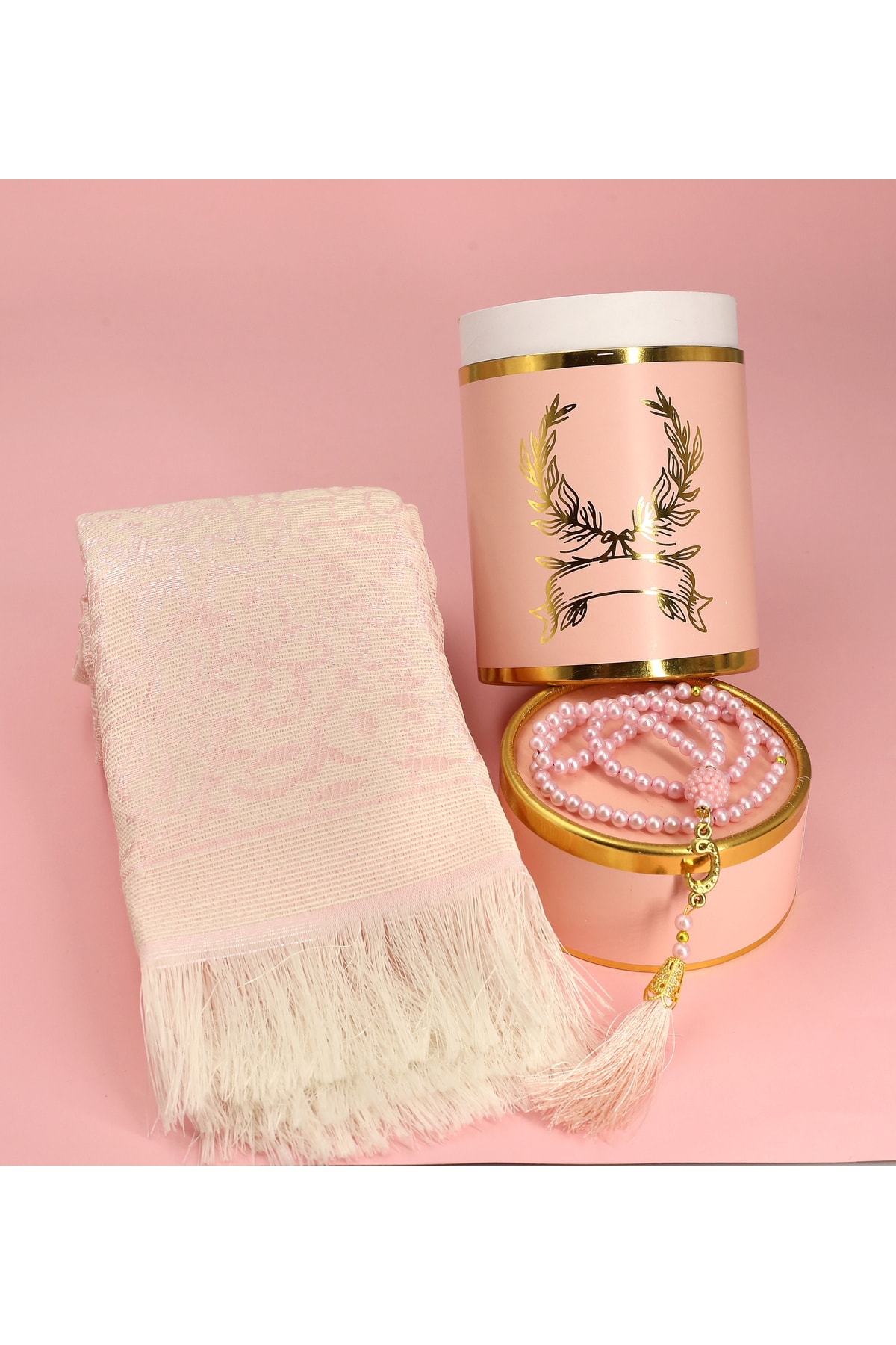 PRODUCT CONTENT Boxed Prayer Rug & Prayer Beads *Special cylinder boxed set with prayer rug and pearl prayer beads, pink *1 taffeta prayer rug (117 x 67cm) Features: Weight: 280 grams. It is easy to carry and use due to its light and thin structure. Stoned Chanting Machine It can also be used as a stitch counter. *You can recite dhikr by wearing it on your finger like a ring. It has an LCD display and memory. You can continue your dhikr from the number you left off. With the technological rosary, you can use the rosary in your palm while doing tawaf, walking, on the bus or in the car. Yasin *The exterior is made of velvet fabric. *Size: 17 x 12 cm. *It consists of 80 pages. Floral Fragrance Non-alcoholic Roll-on Essence * Contains sweet and delicious tangerine and aromatic herbal notes in the top notes. Heart notes include blue hyacinth, iris, nectar, peach blossom, red cyclamen and wild rose. Base notes are a perfect blend of sandalwood, cedar and musk. *It is 6 ml. Top Notes of the Perfume * Tangerine * Loveflower * Sage Middle Notes of the Perfume * Wild Rose * Peach Blossom * Iris, Blue Hyacinth * Red Cyclamen * Nectar Base Notes of the Perfume * Cedar * Musk * Sandalwood ***FRAGRANCES MAY VARY DEPENDING ON STOCK.