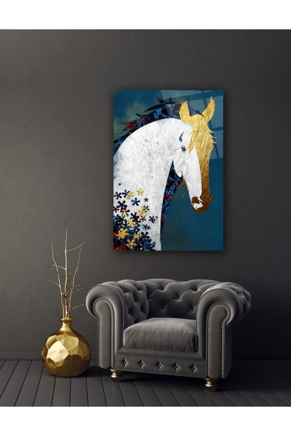 Gold Horse Glass Painting