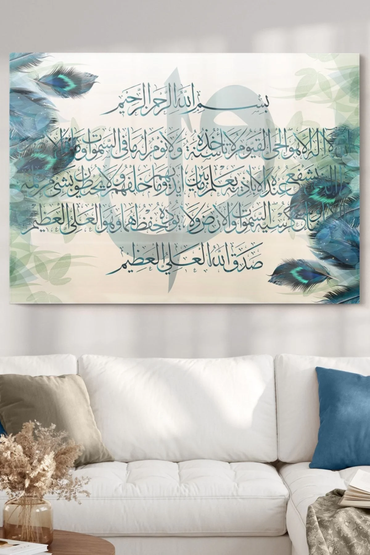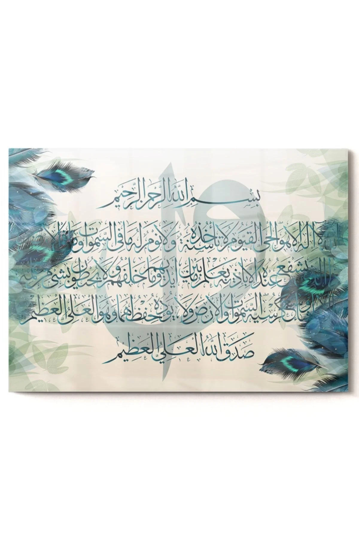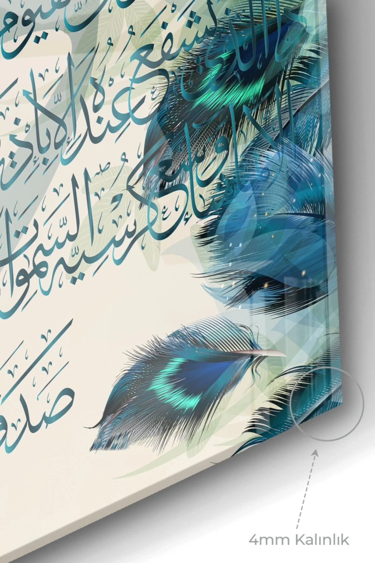Ayetel Kursi Elif Vav Peacock Feather| Religious Themed Glass Painting | 50x70cm