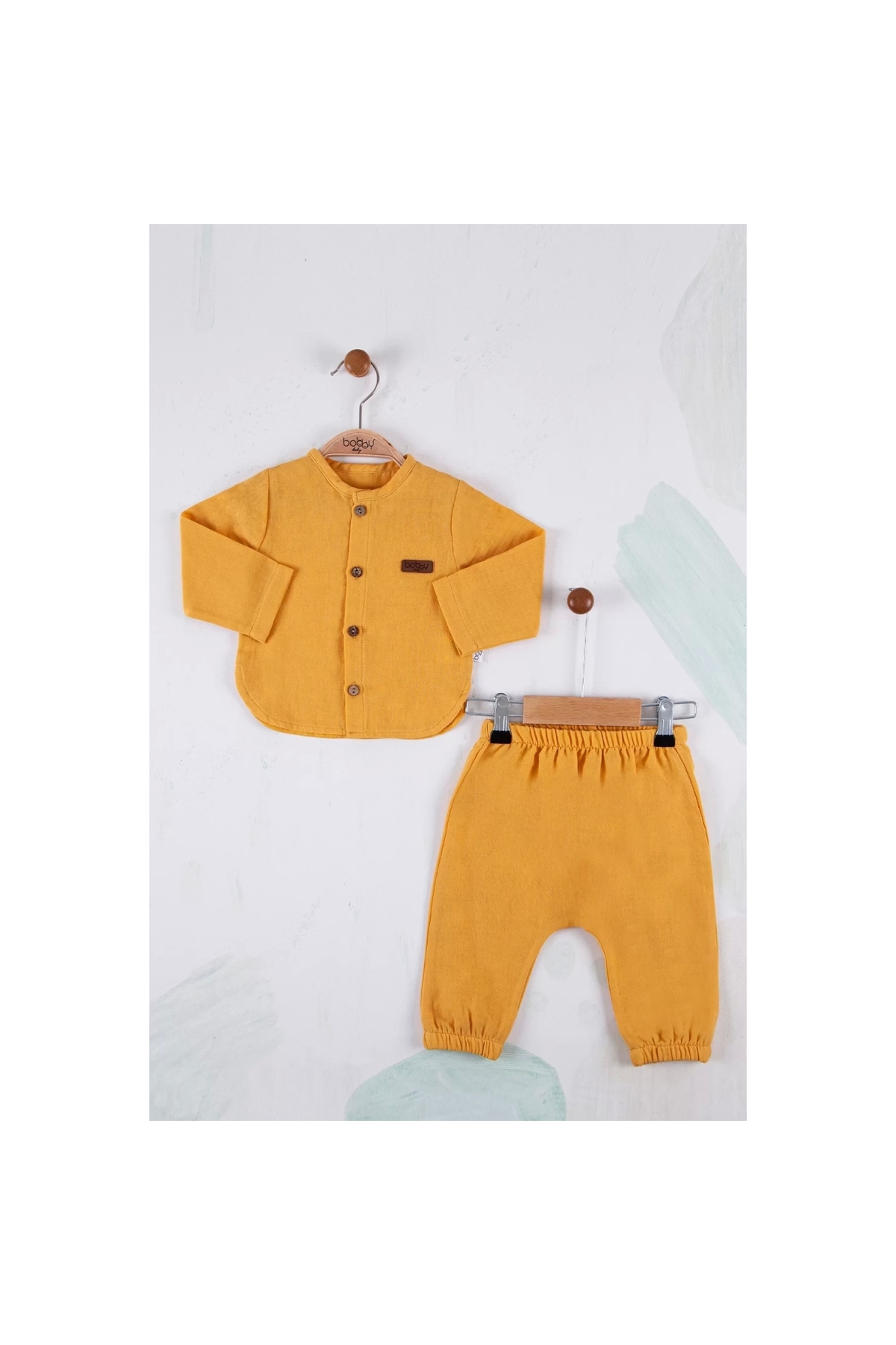 Oval Cut 5 Button Muslin Fabric 2-Piece Baby Boy Set
