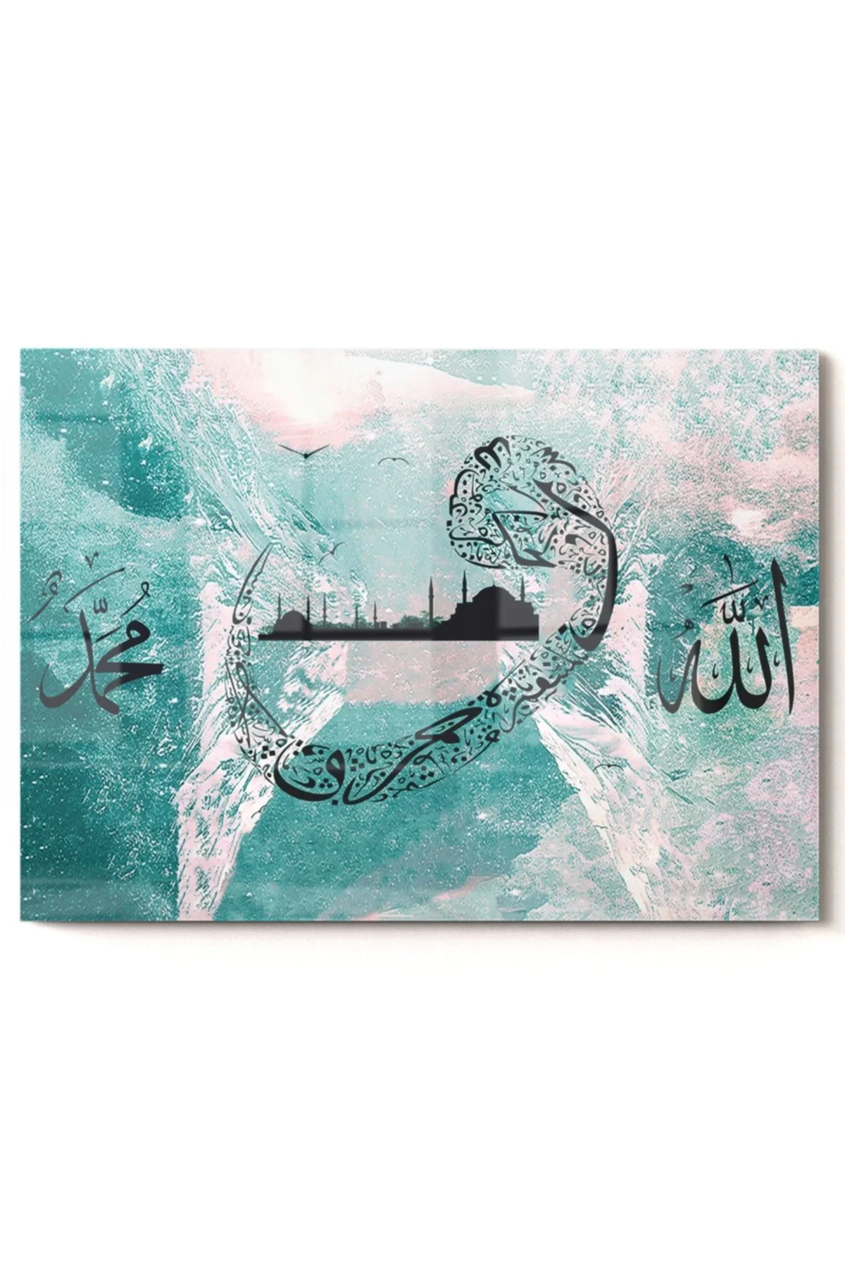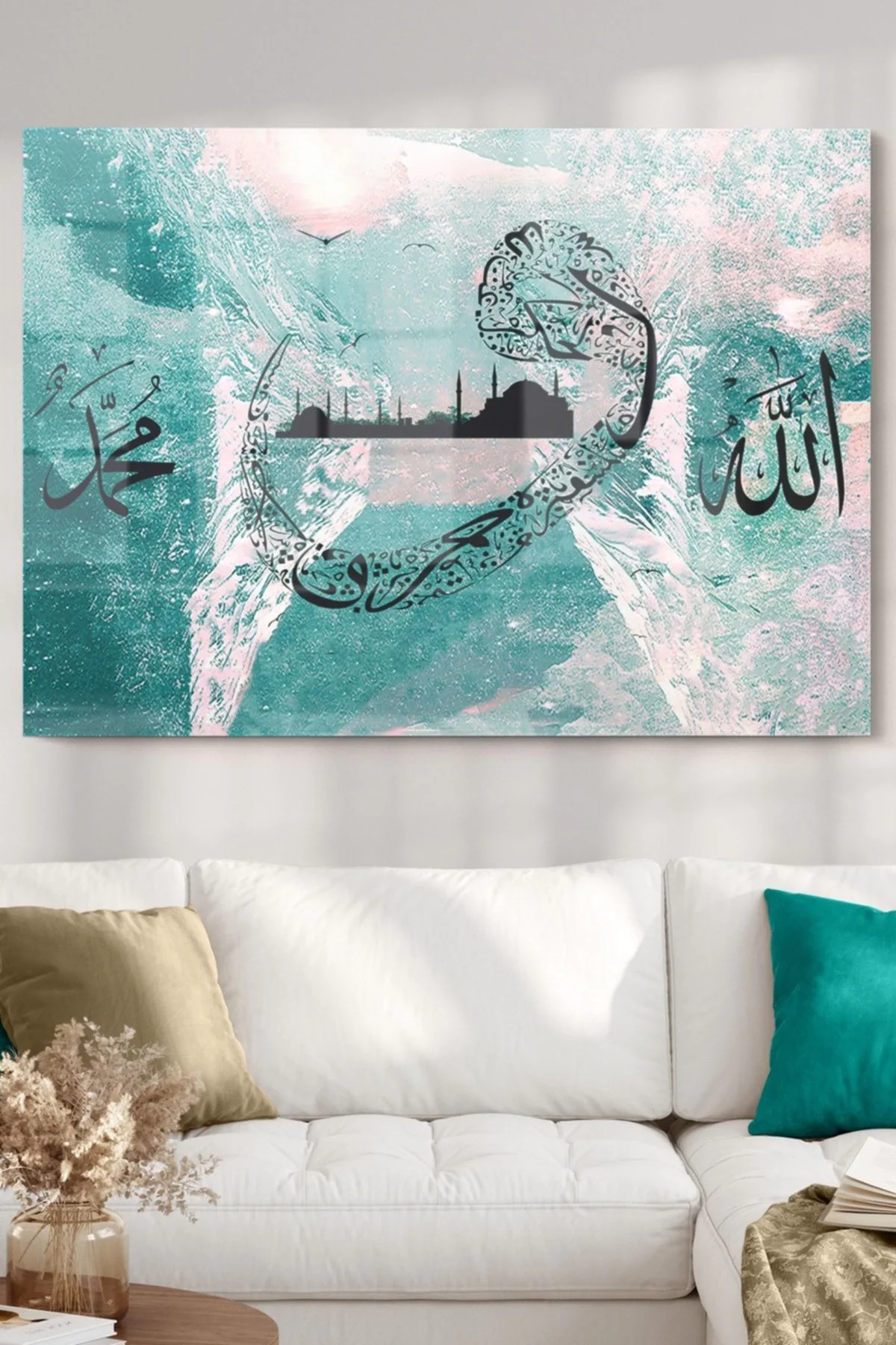 Elif Vav Allah Muhammed Yeşil| Religious Themed Glass Painting | 50x70cm