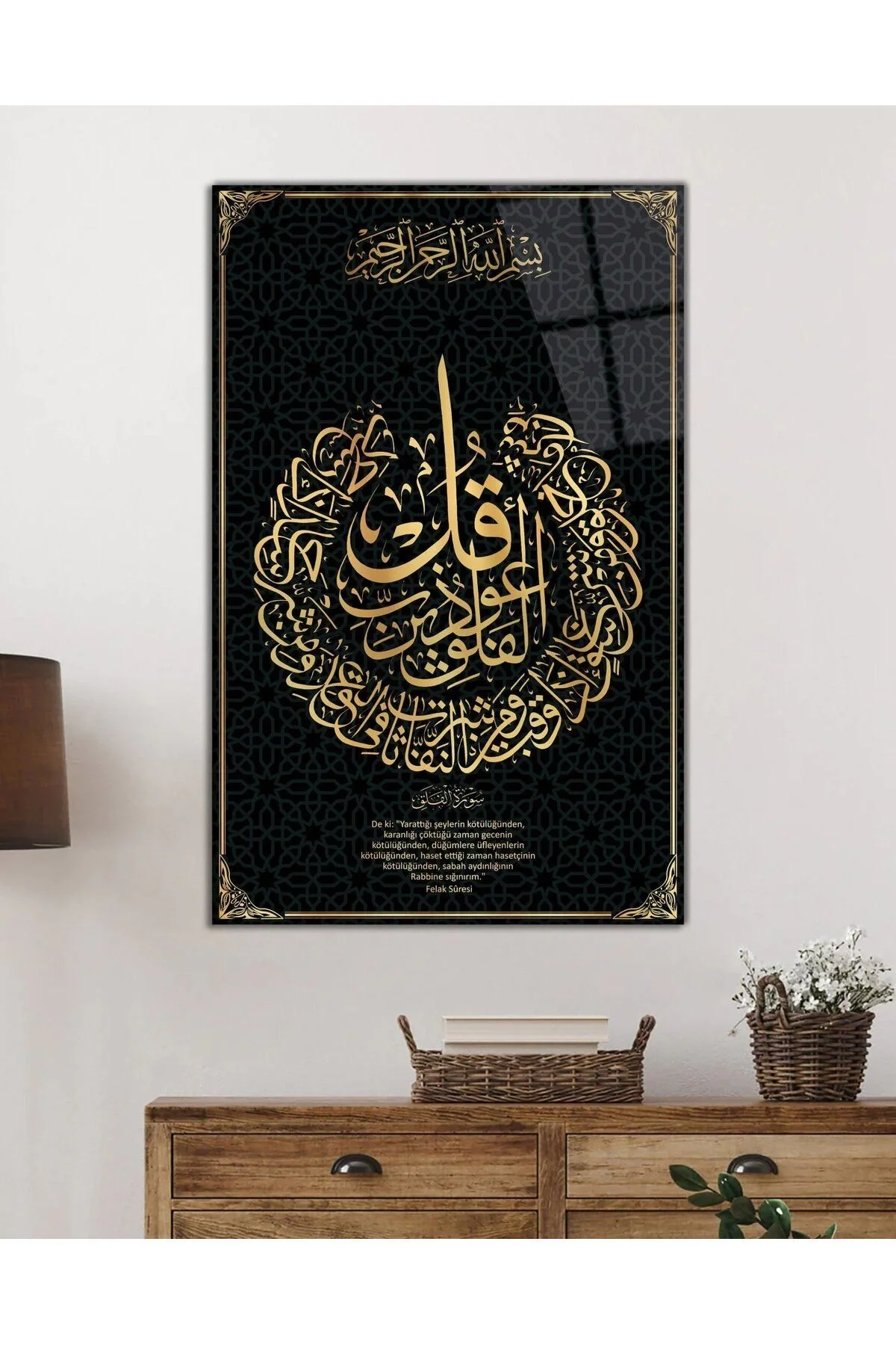 Surah Falaq Verse Quran Religious Islamic Glass Painting, Home And Office Wall Decor, Large Glass Painting