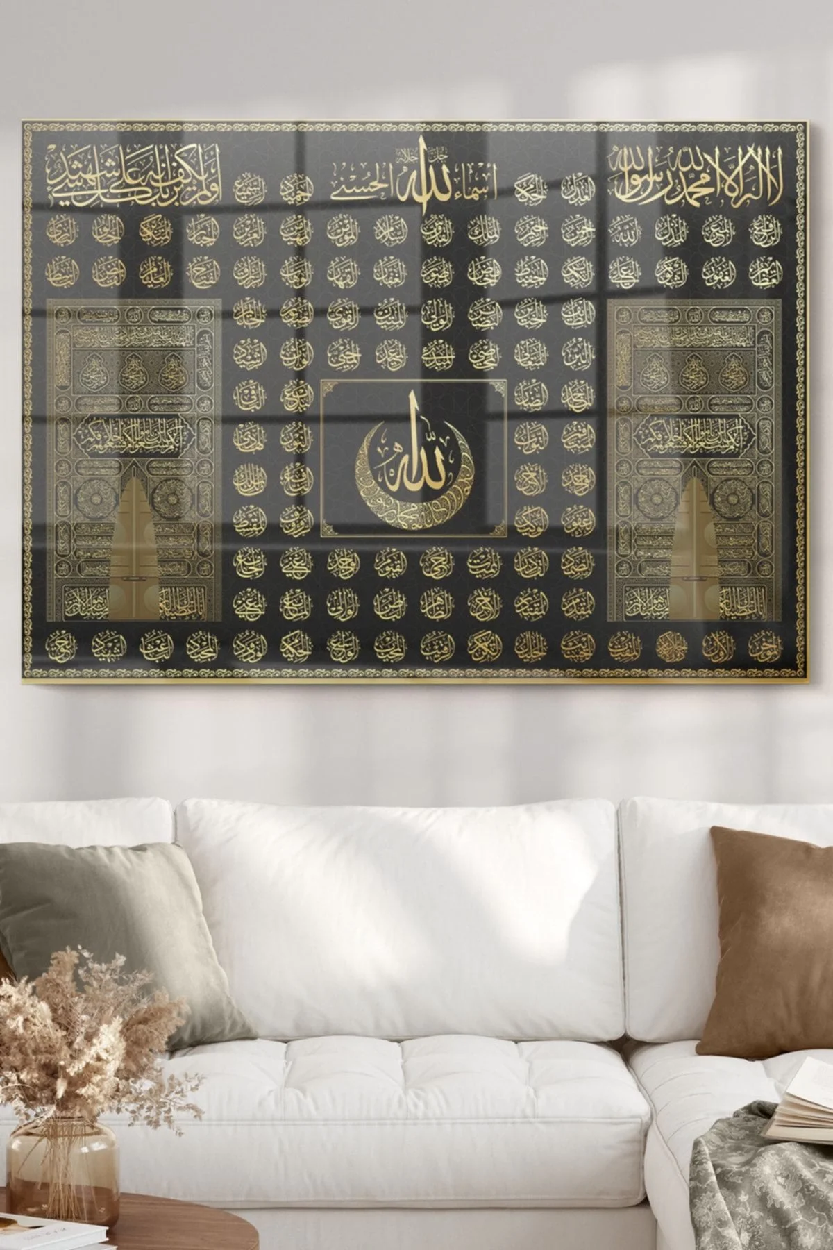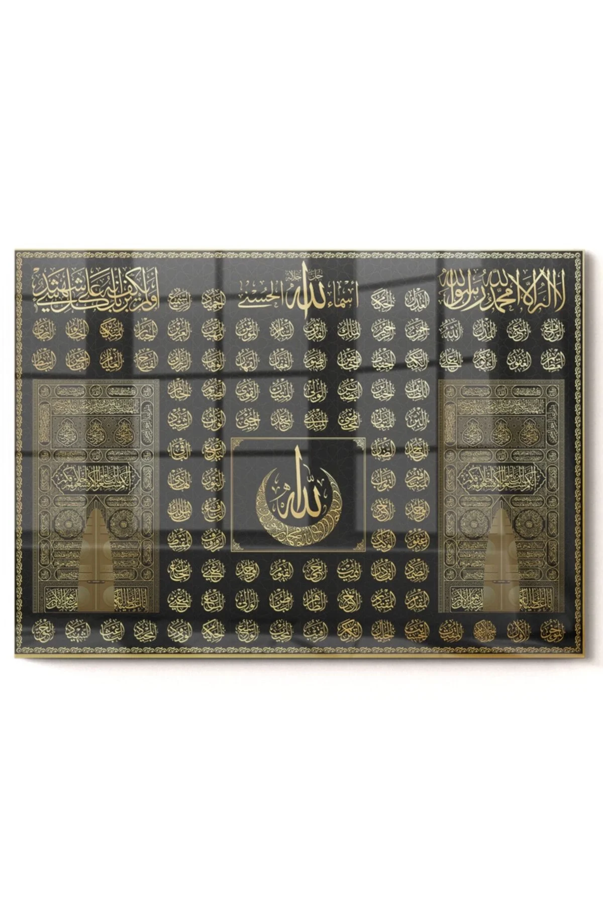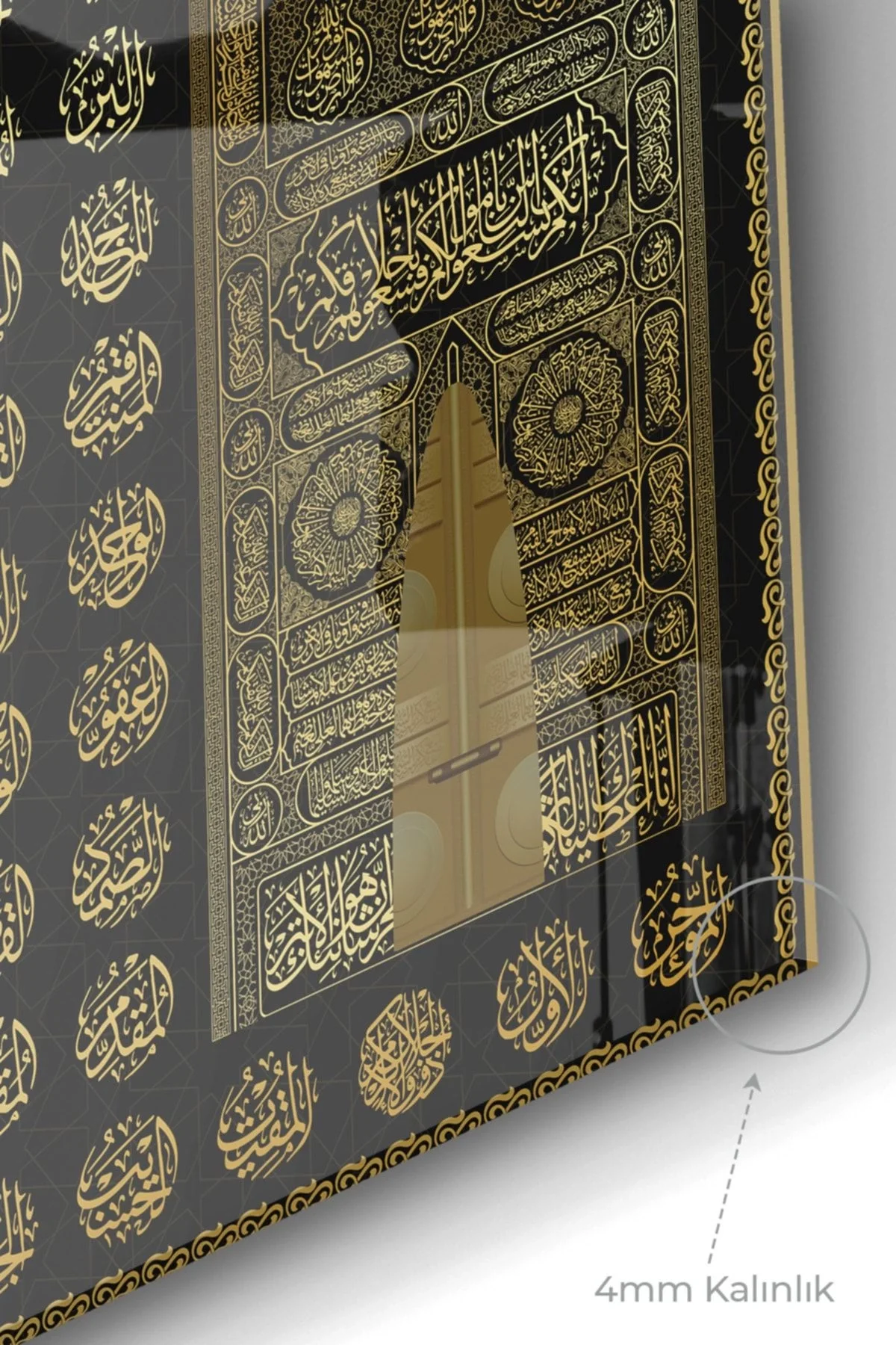 Esmaül Hüsna Kaaba Cover Gold Detail | Religious Themed Glass Painting | 50x70cm