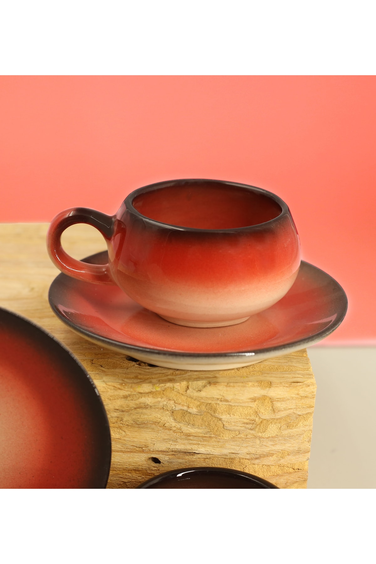Pupilla Bamboo Towel & Red Color Vintage Cup & Turkish Coffee Gift Set with Card