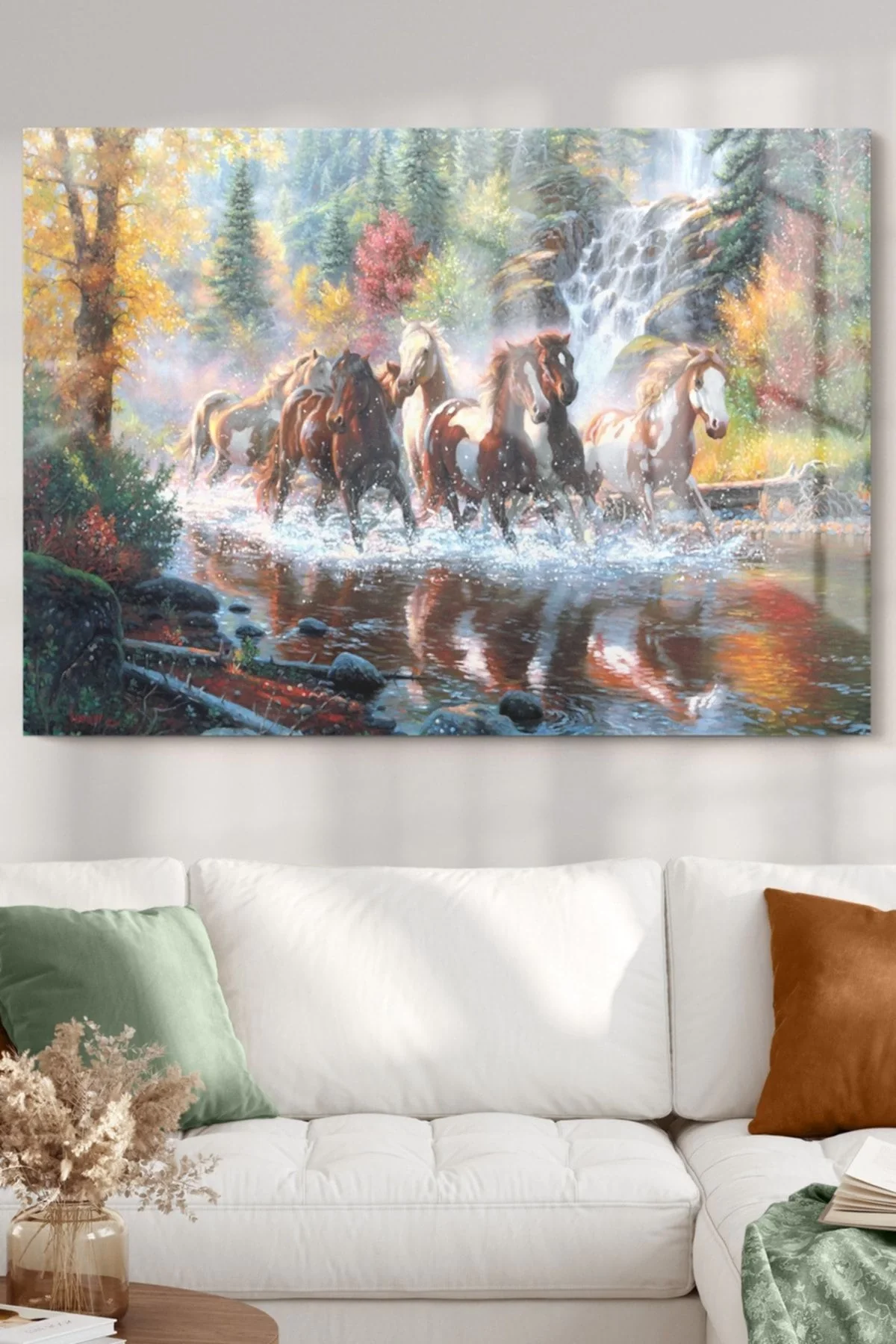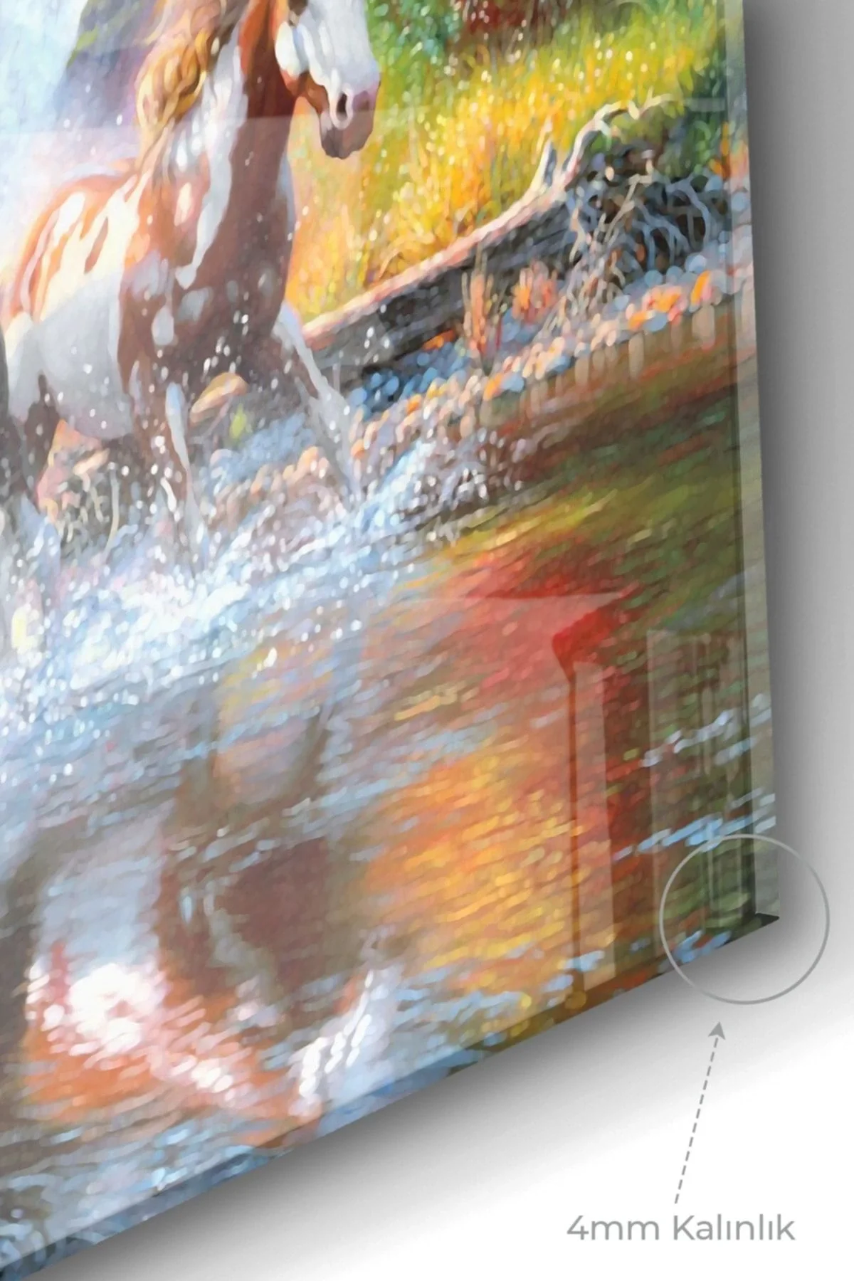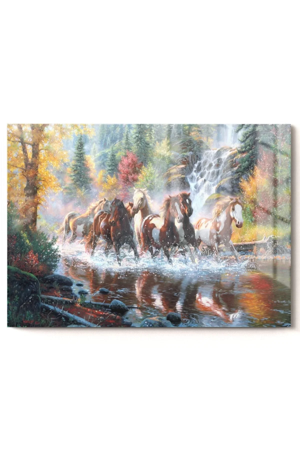 Lake And Running Horses | Animals Themed Glass Painting | 50x70cm