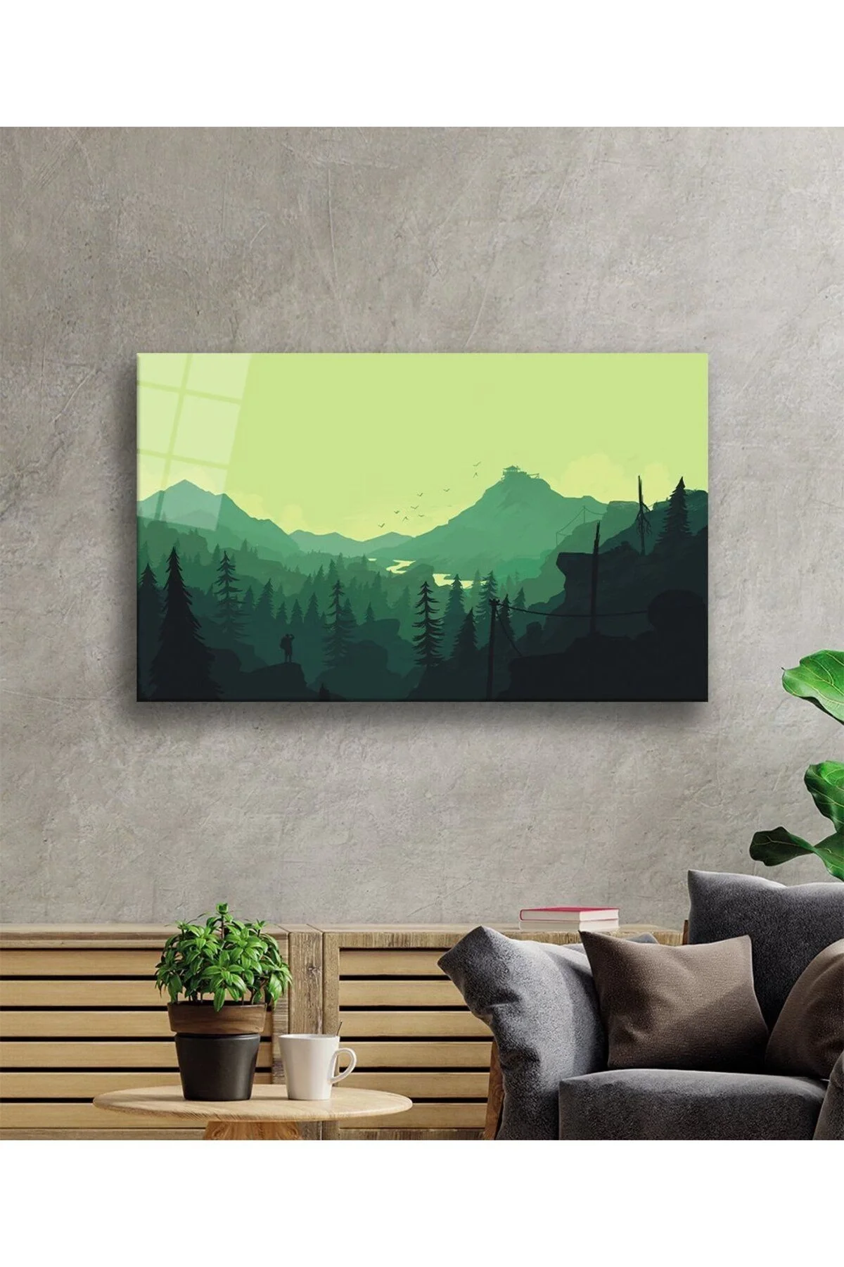 Green Illustration Mountain Glass Painting, Home And Office Wall Decor