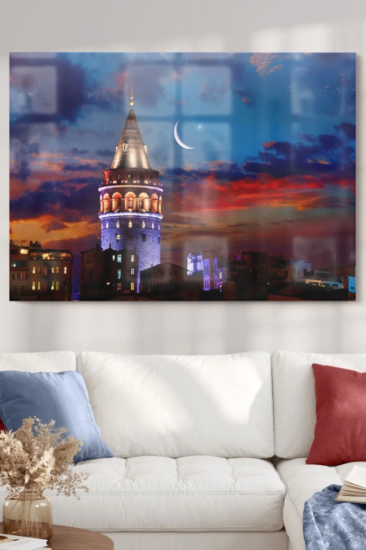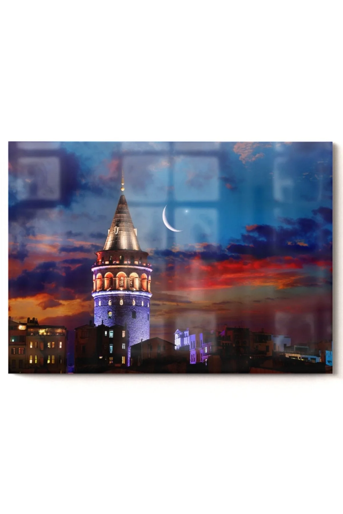 Galata Tower and Crescent | City Themed Glass Painting | 50x70cm