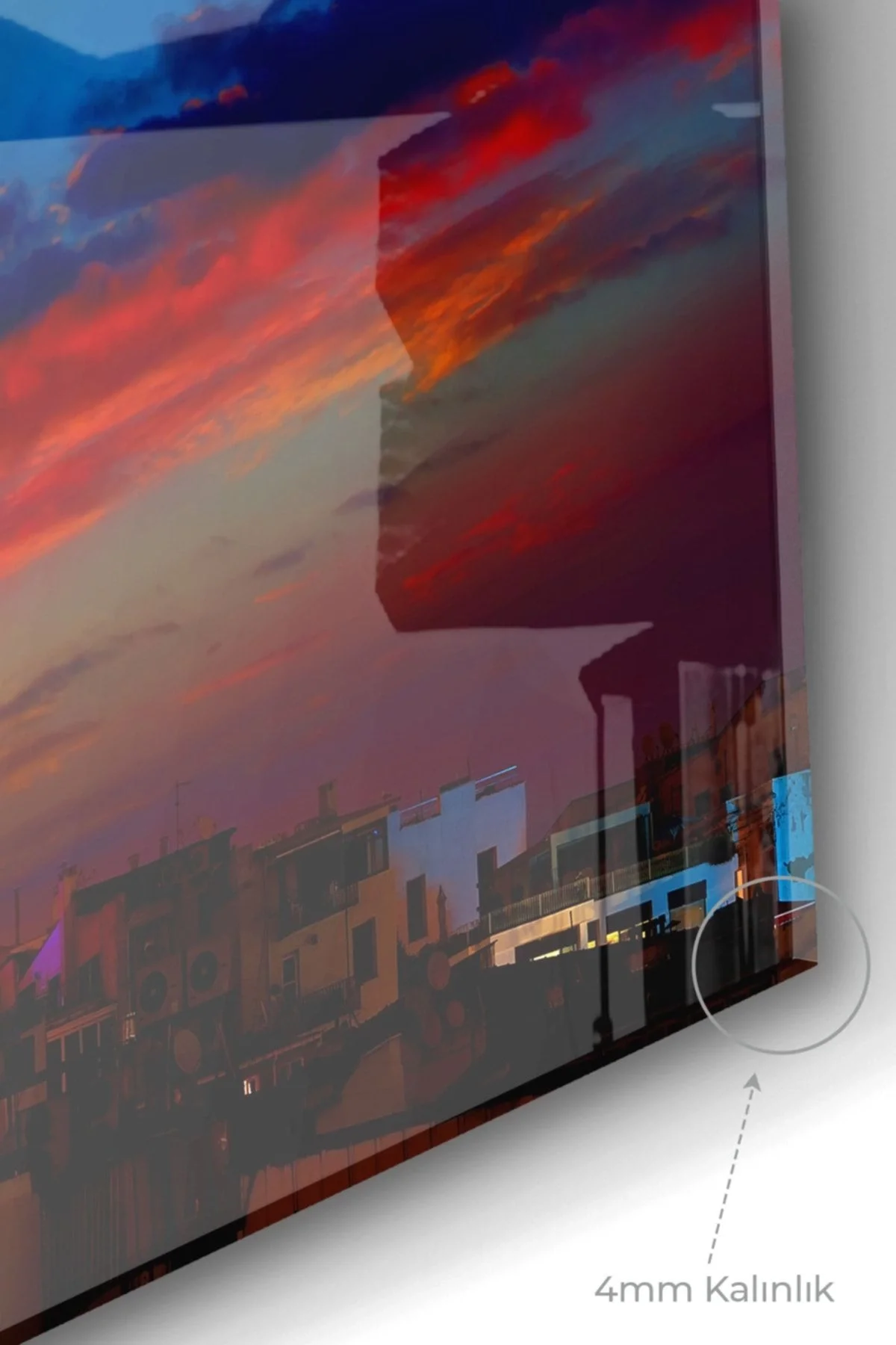 •Product Dimension: 50x70cm •Installation: A different innovative interior decoration solution is offered with this extremely simple and stylish product. •Printing: UV printing technique has been applied. •Thickness: 4 mm thick, first-class flat glass with tempered edges and grinded edges, which is 10 times more resistant to breakage than normal glass. •Information: With special metal hanging apparatus, there is no risk of our product accidentally falling from where it is hung. •They do not fade over time and can be easily cleaned with a damp cloth.