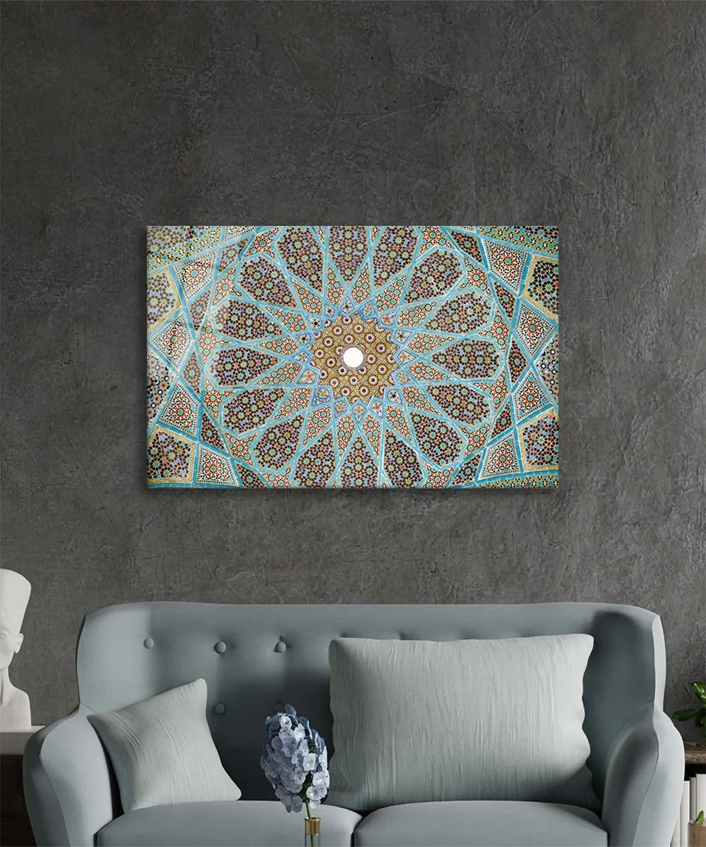 The printing of the glass painting is in the form of direct printing on the back surface of the glass. In this way, the printing remains behind the glass and you will see the high printing quality with the elegance of the glass.