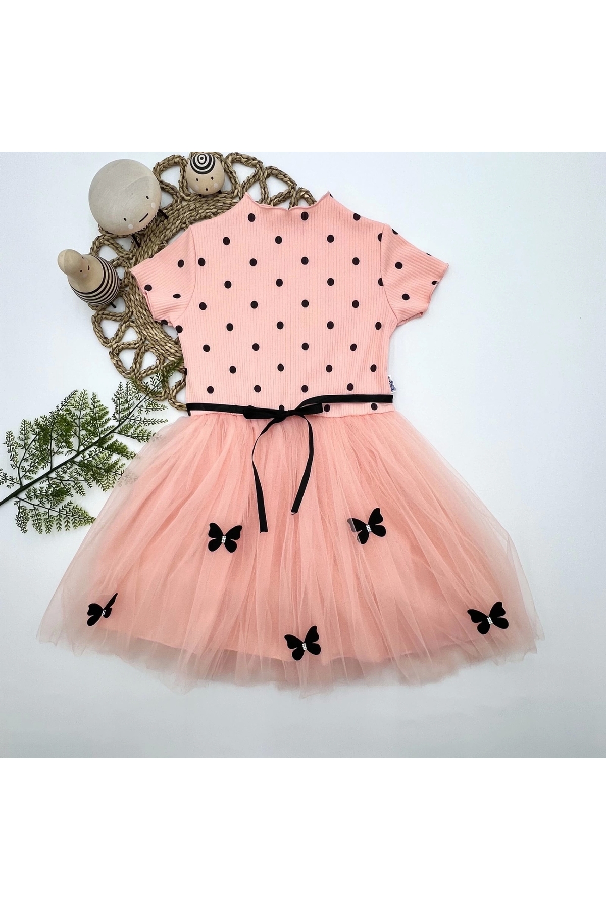 5-6-7 Years Old Polka Dot Butterfly Skirt Lined Girl's Dress
