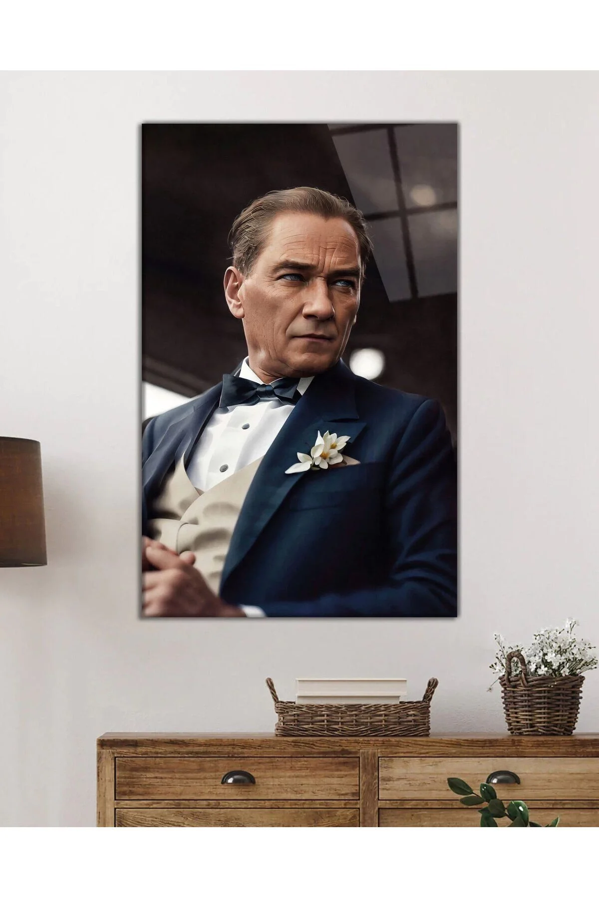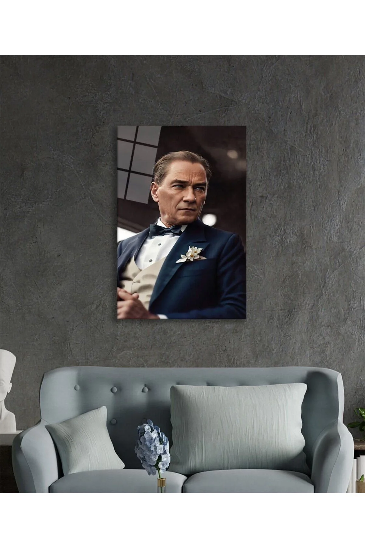 Artificial Intelligence Ataturk Portrait Glass Painting, Home And Office Wall Decor, Large Tempered Glass Painting