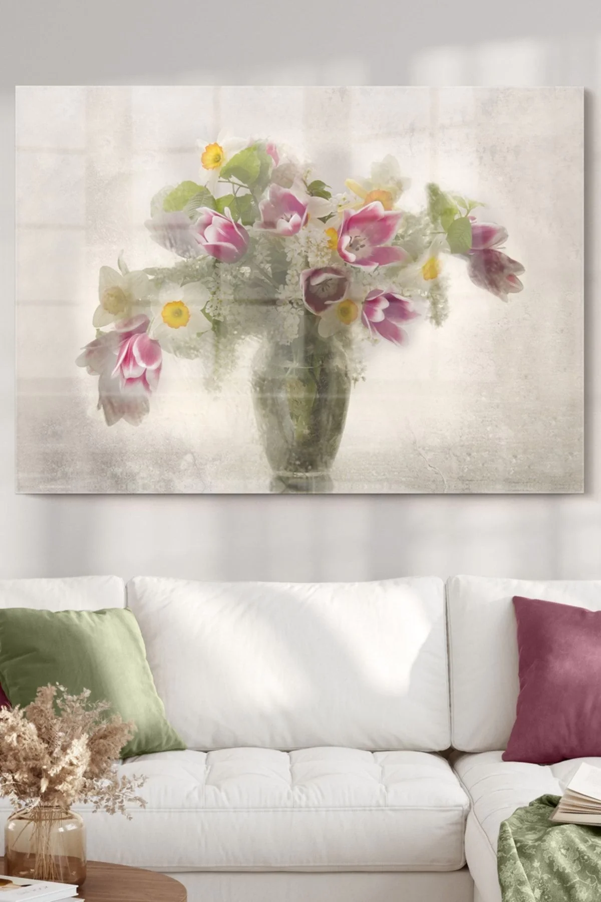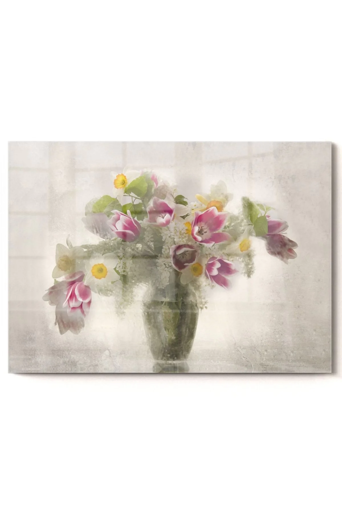 Vase And Flower | Flower Themed Glass Table | 50x70cm