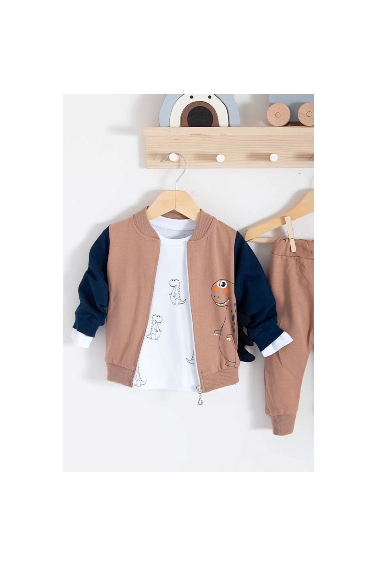 Dinosaur Patterned Cardigan 3-Piece Baby Boy Set