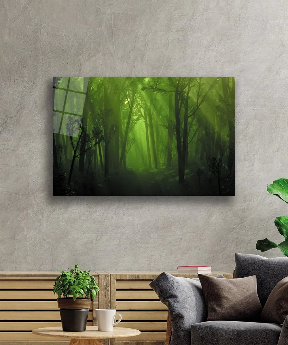 TEKNOO- Forest Tree Green Glass Painting Forest Tree Green