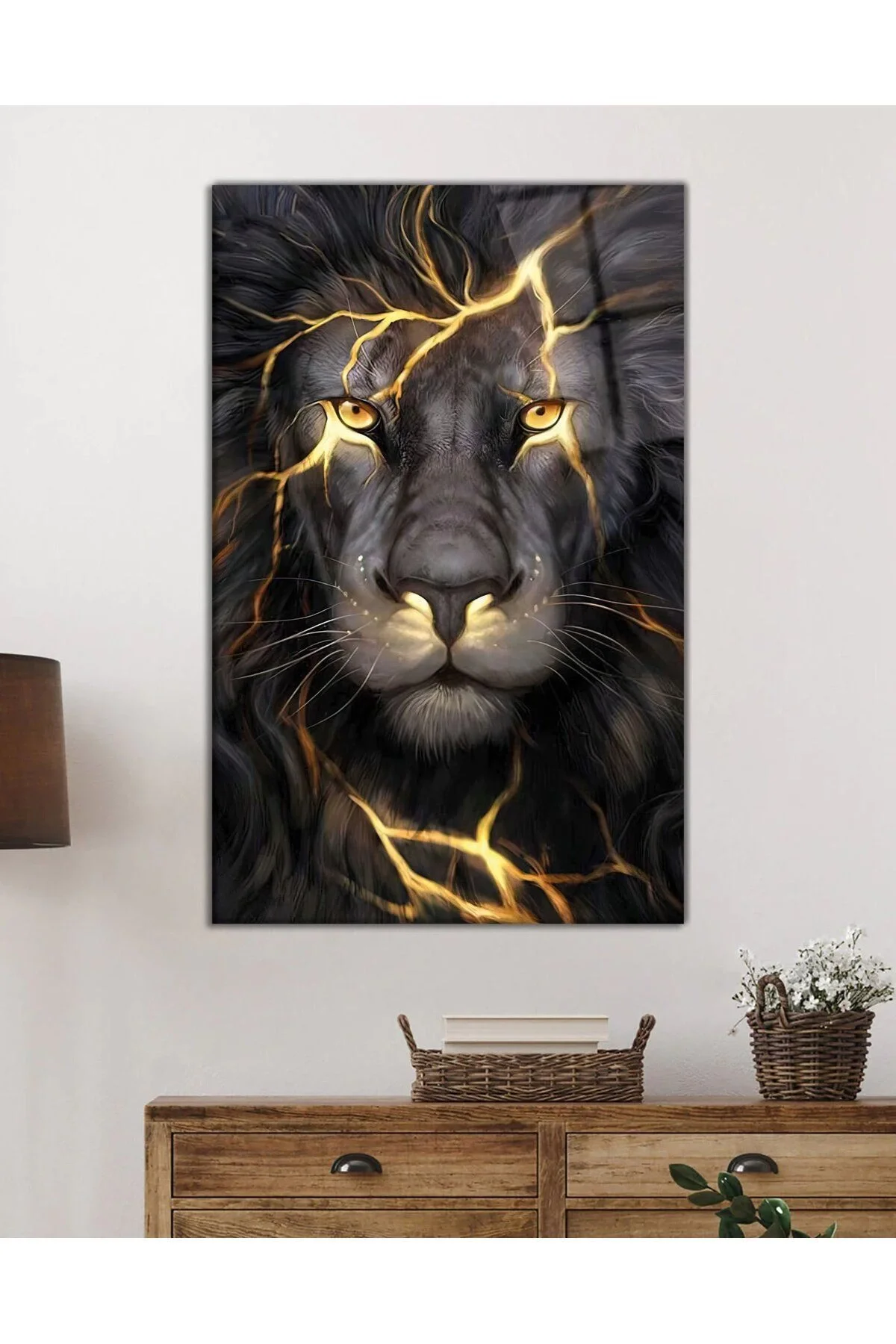 Yellow-Eyed Lion Animal Portrait Glass Painting,